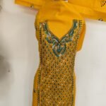 Kantha Stitch Salwar Suit Material – Yellow with Green & White Embroidery