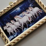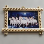Handcrafted Wooden Wall Hanging with Running Horses Night Scene Painting