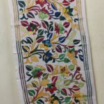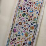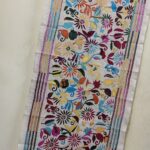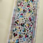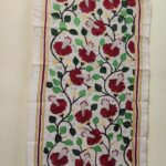 D Tussar Silk Kantha Stitch Stole – Designs of Vines, Leaves, and Flowers