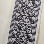 D Tussar Silk Black & Off-White Kantha Stitch Designer Stole – Handcrafted Ethnic Dupatta