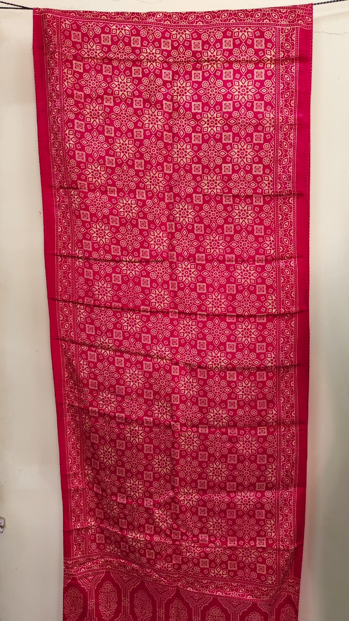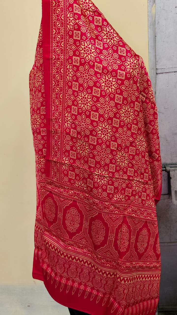 Ajrakh Mashru Modal Silk Stole – Ruby Pink Traditional Minakari Pattern