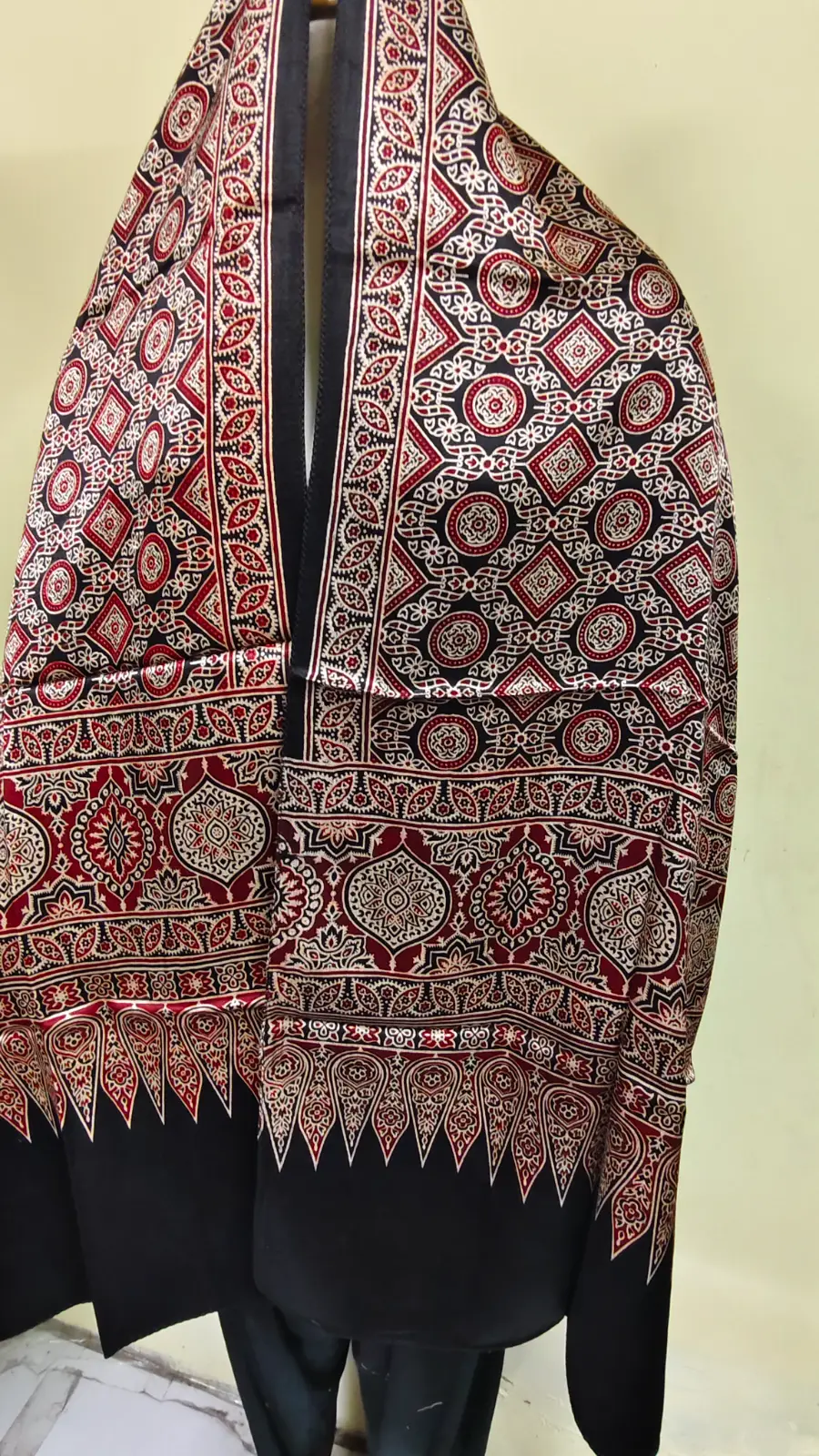 Ajrakh modal silk hand block printed dupatta