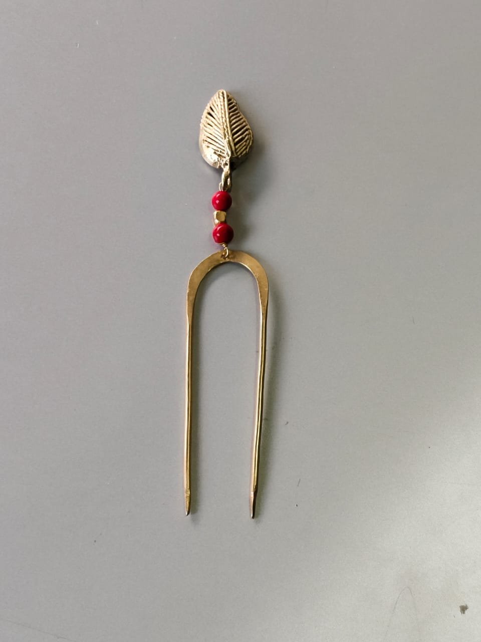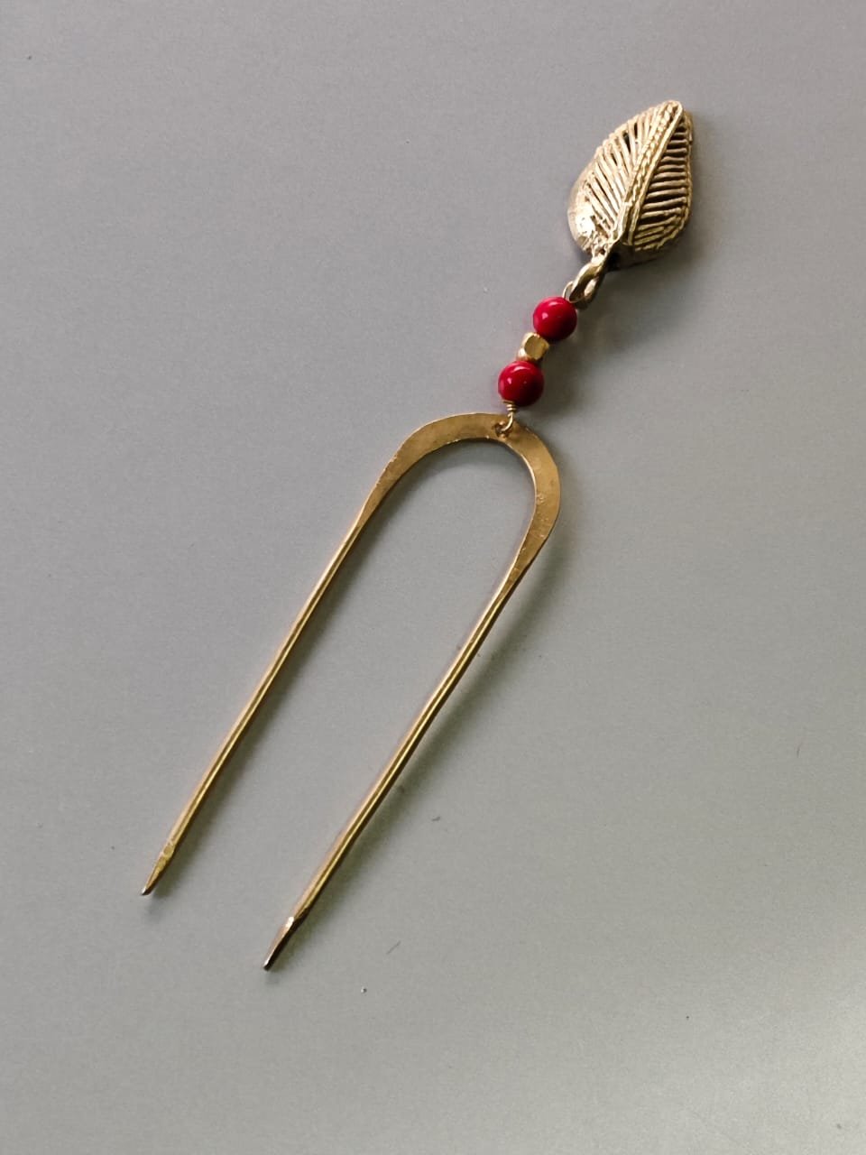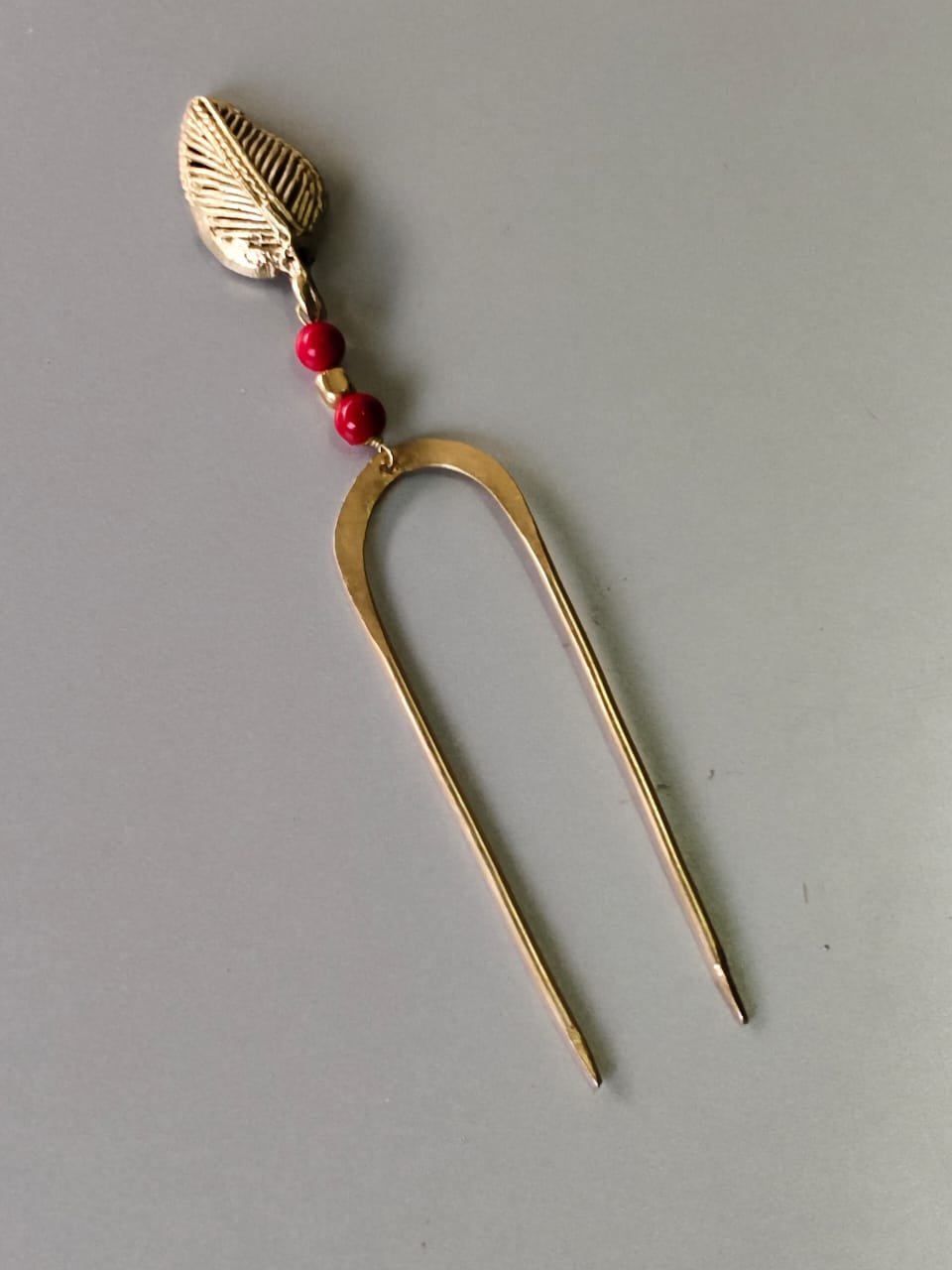 Antique Style Brass Hair Pin (Handcrafted Red Beads)