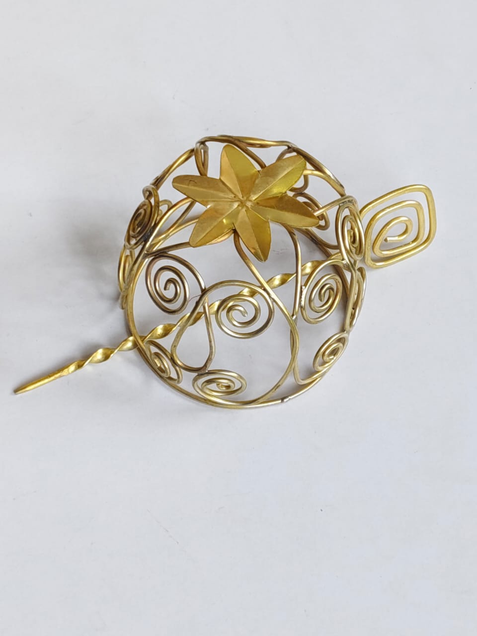Handcrafted with antique finish Brass Hair Pin for women and girls (Quantity 1 Piece)