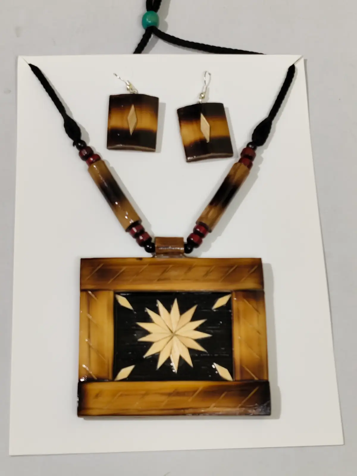 Bamboo Handcrafted Jewellery Set – Necklace & Earrings with Tribal Motif