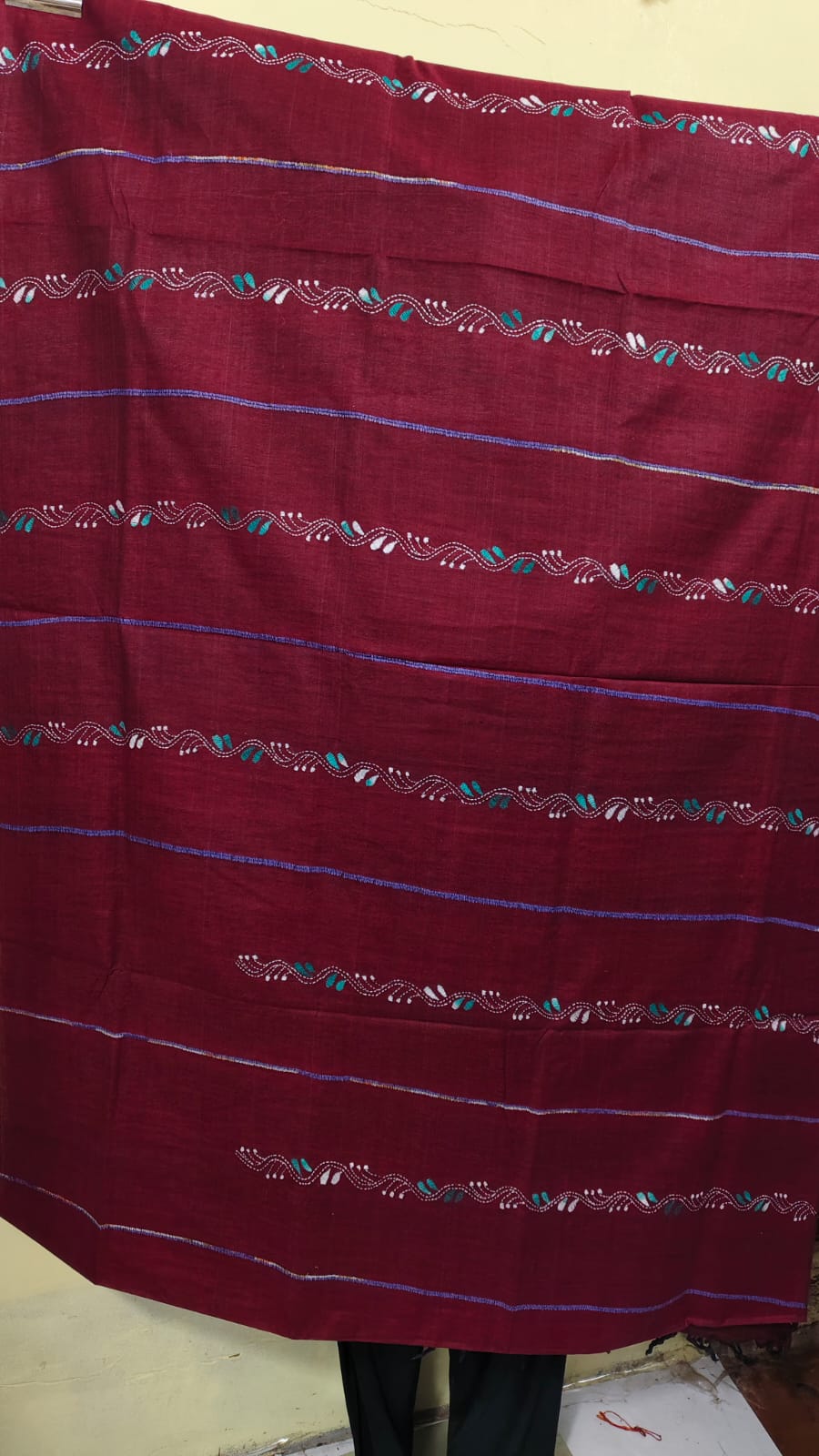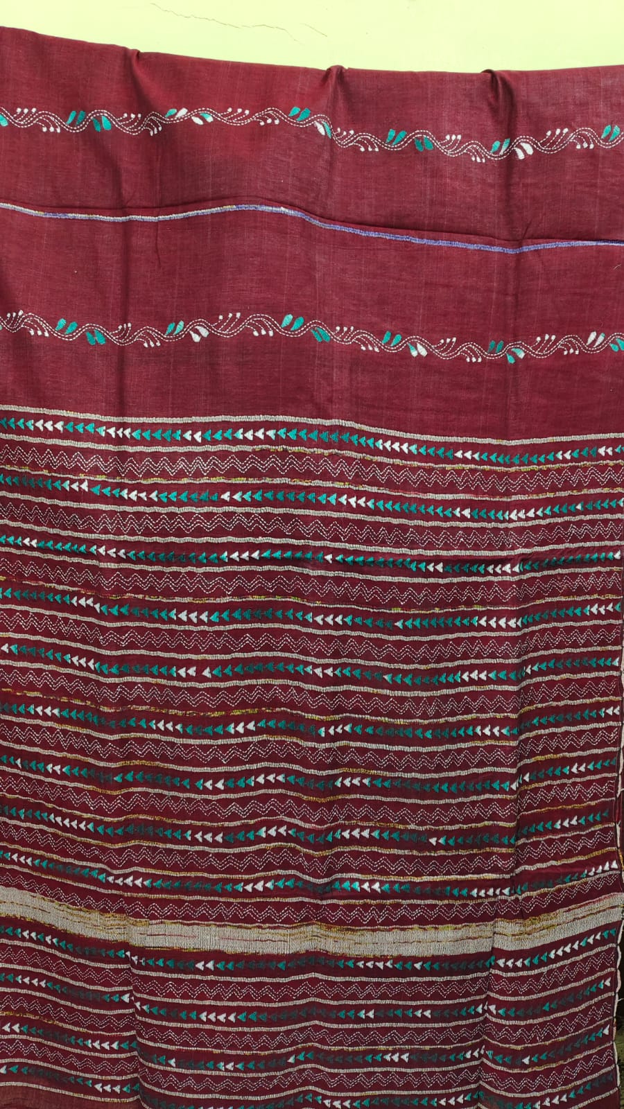 Bengal Kantha Stitch Khadi Cotton Saree – Maroon color