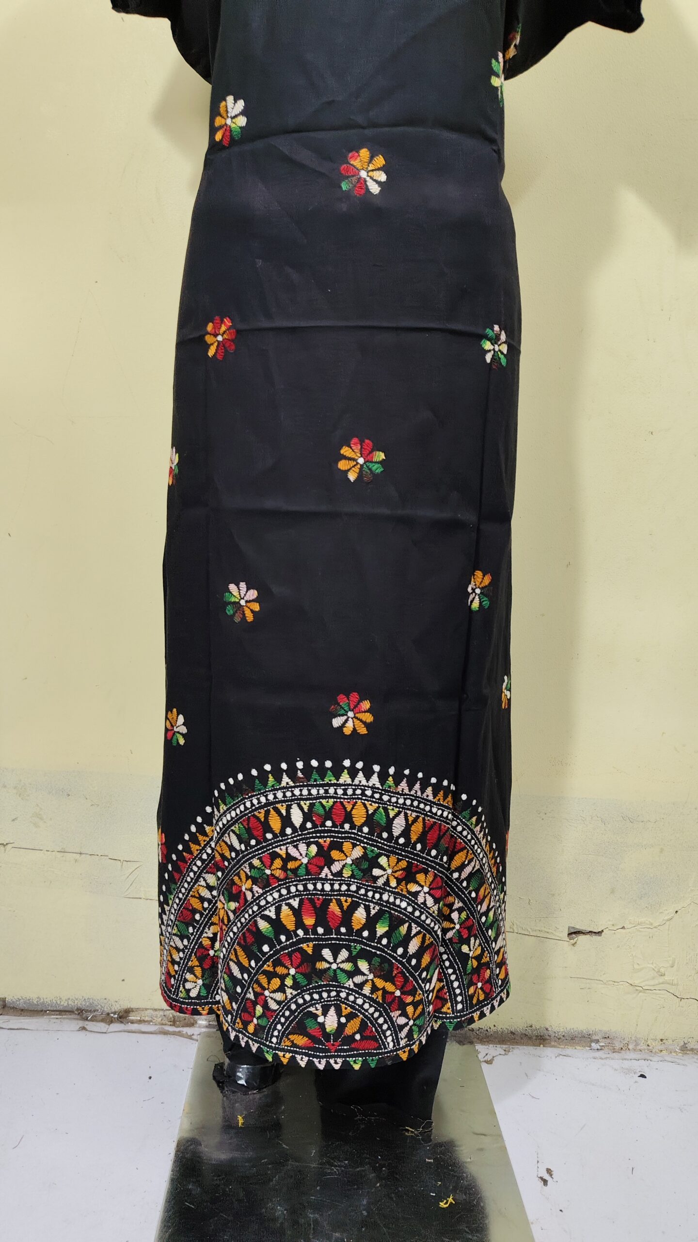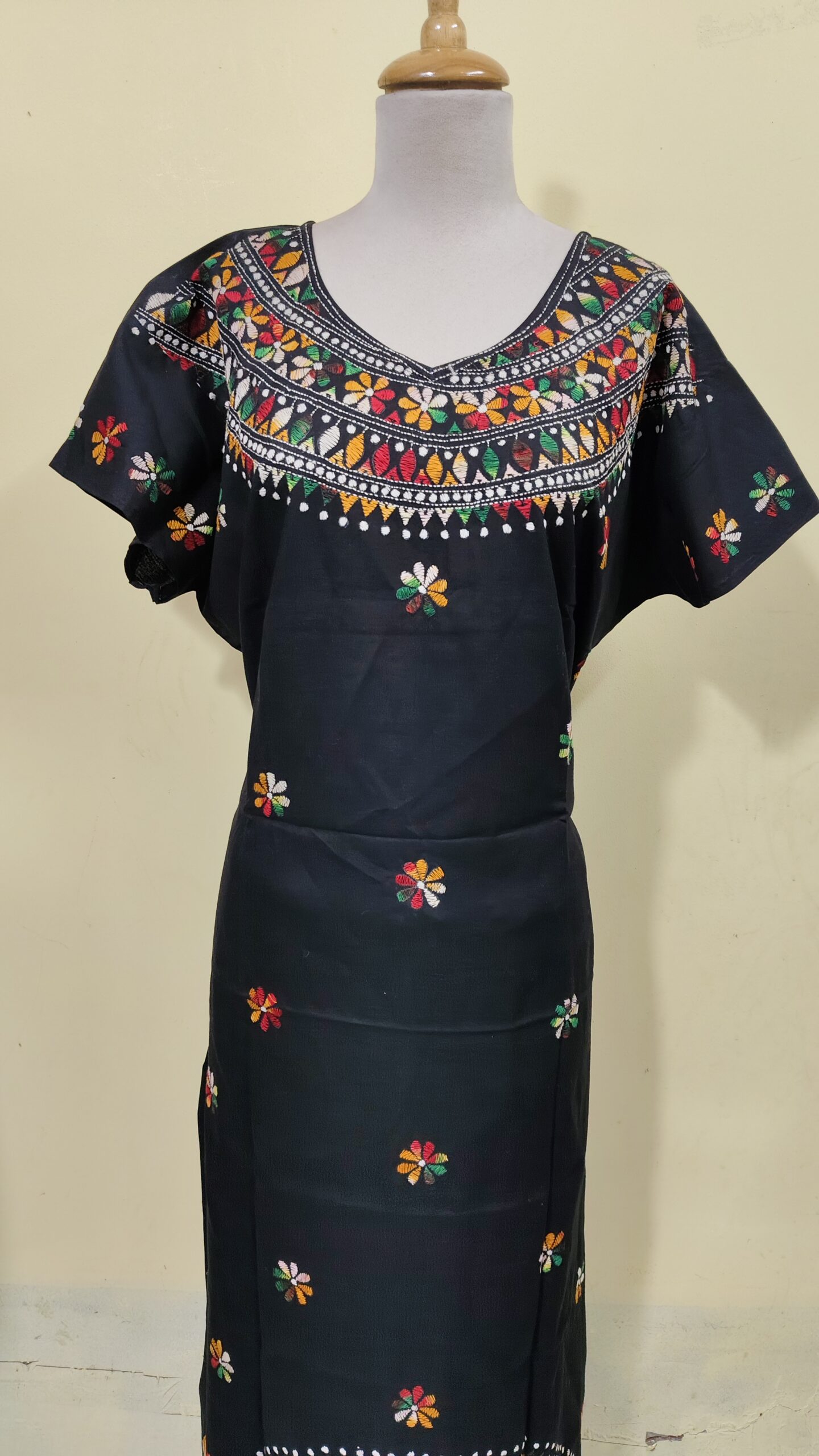 This Cotton Kantha Stitch kaftan nighty is available in a free size, adjustable, which comfortably fits bust sizes from 40″ to 48″. | Full Length -55 inch. Quantity 1 piece