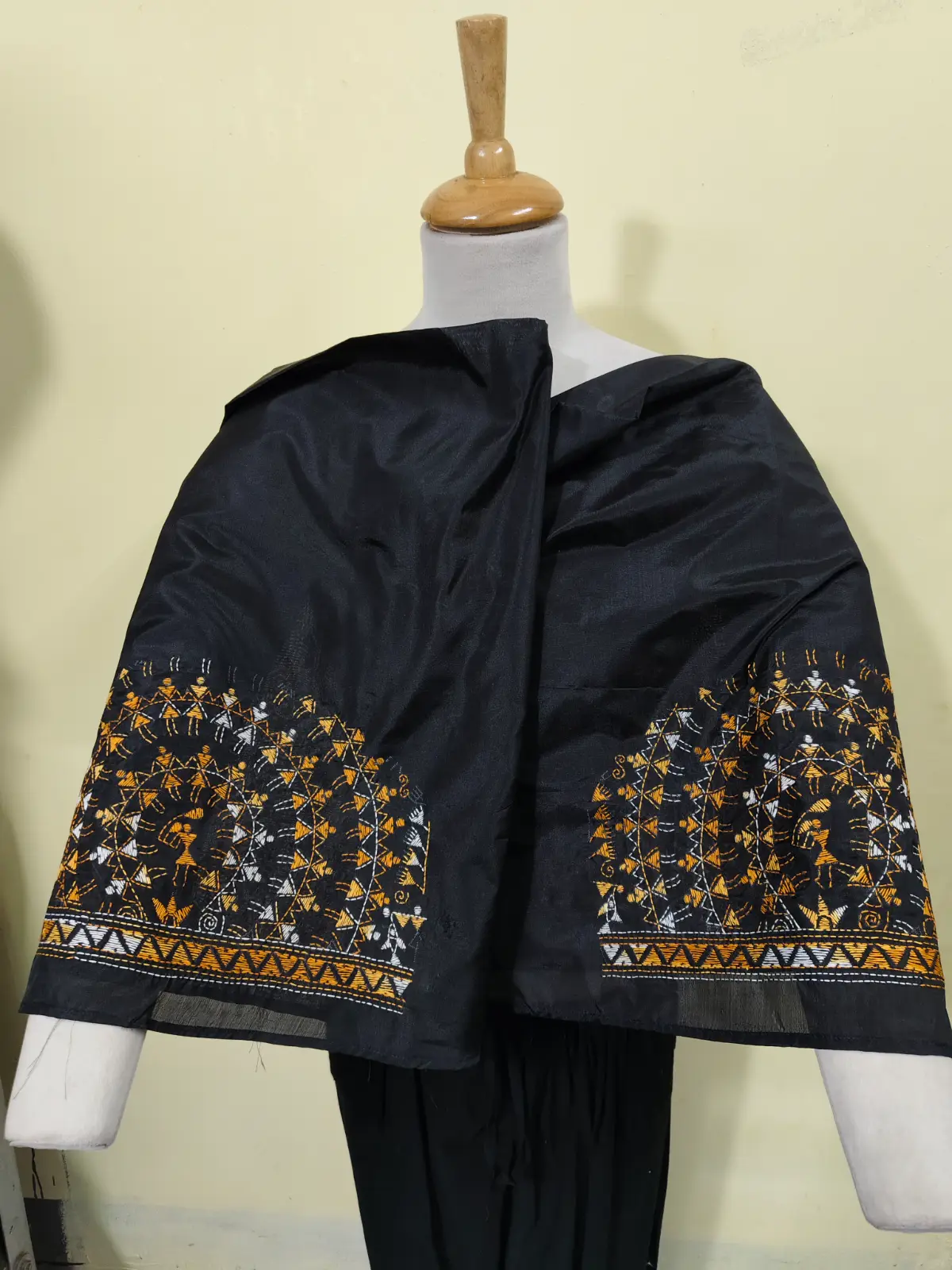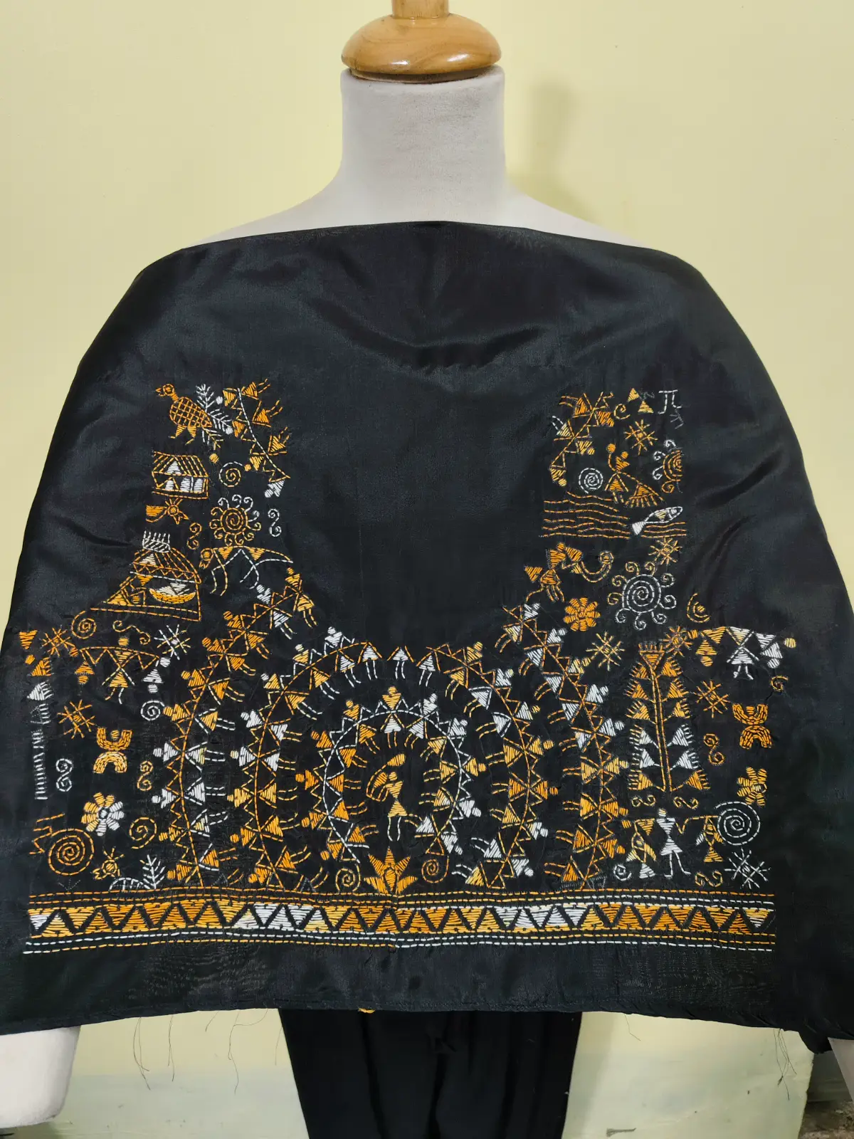 🔸 Design: Hand Kantha Stitch (Warli tribal & floral motifs)