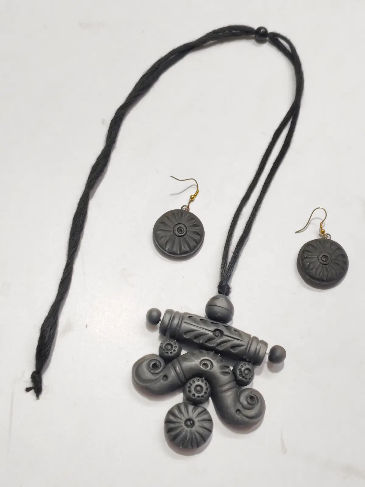This is good quality product Handmade black terracotta necklace set with earrings for women