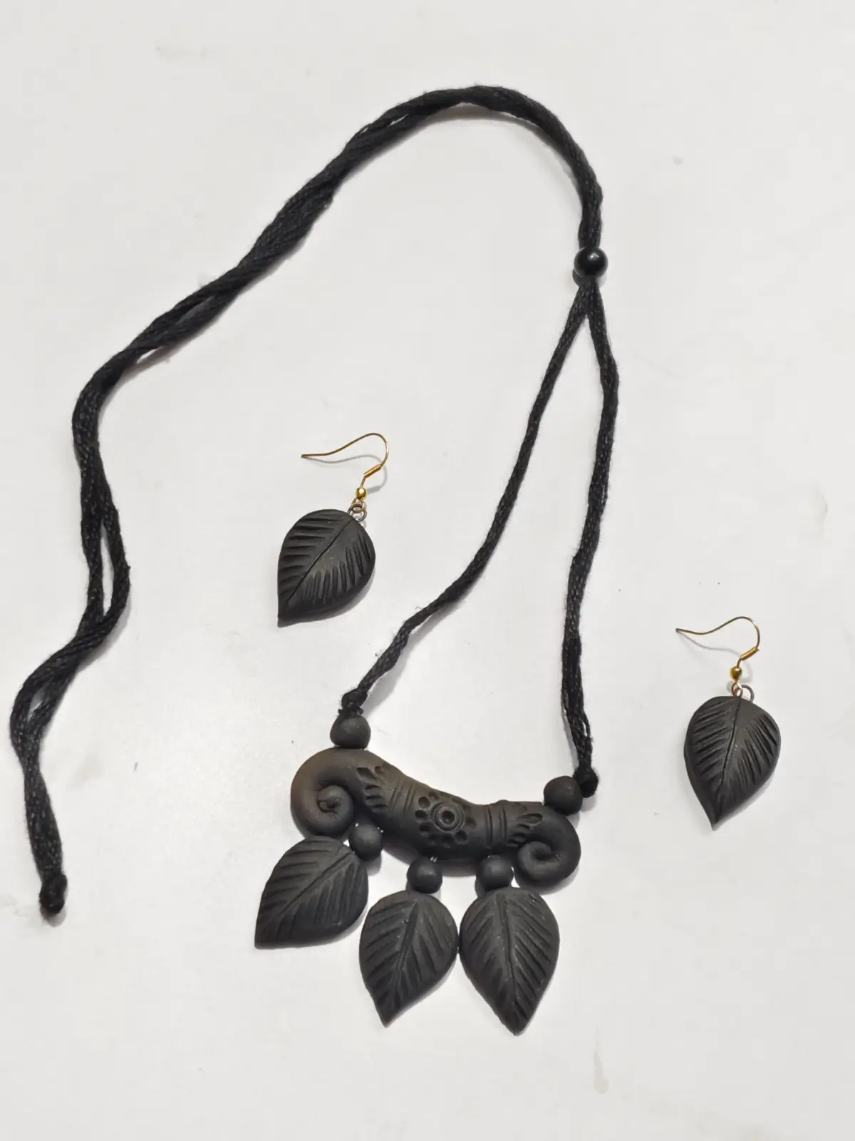 Black Terracotta Necklace Set with Earrings Leaf design