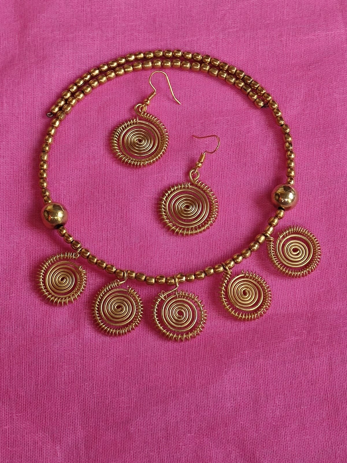 Handicraft Brass Jewellery Round design Necklace Set and Earrings Brass Hoop Jewelry for Women Ready to Gift Net Quantity (N): 1