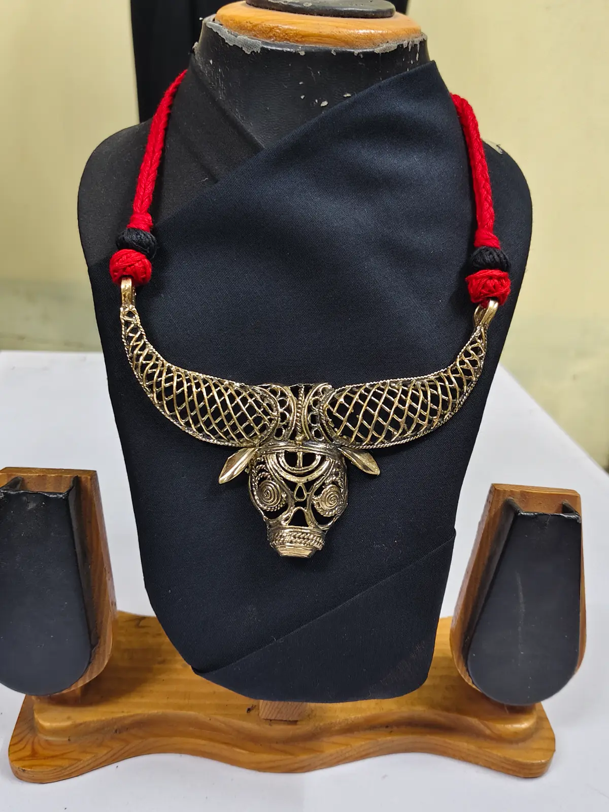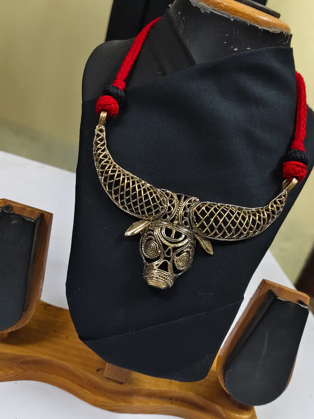 Handmade Neck Necklace: This neck necklace is made from good quality brass. Dhokra is a process of metal casting which has been used in India for many years and is still being used.