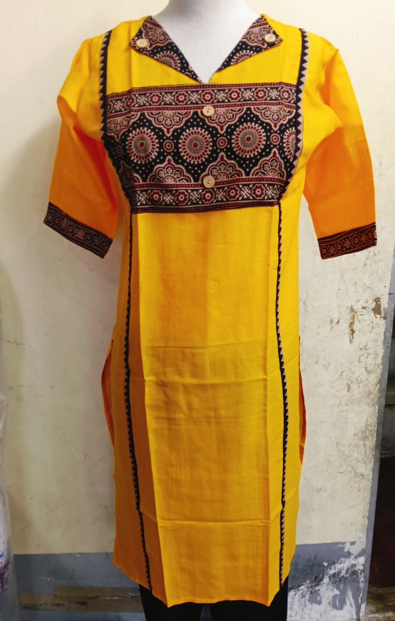 CG Blue flex Cotton Kurti Ajrakh degien Wooden Button