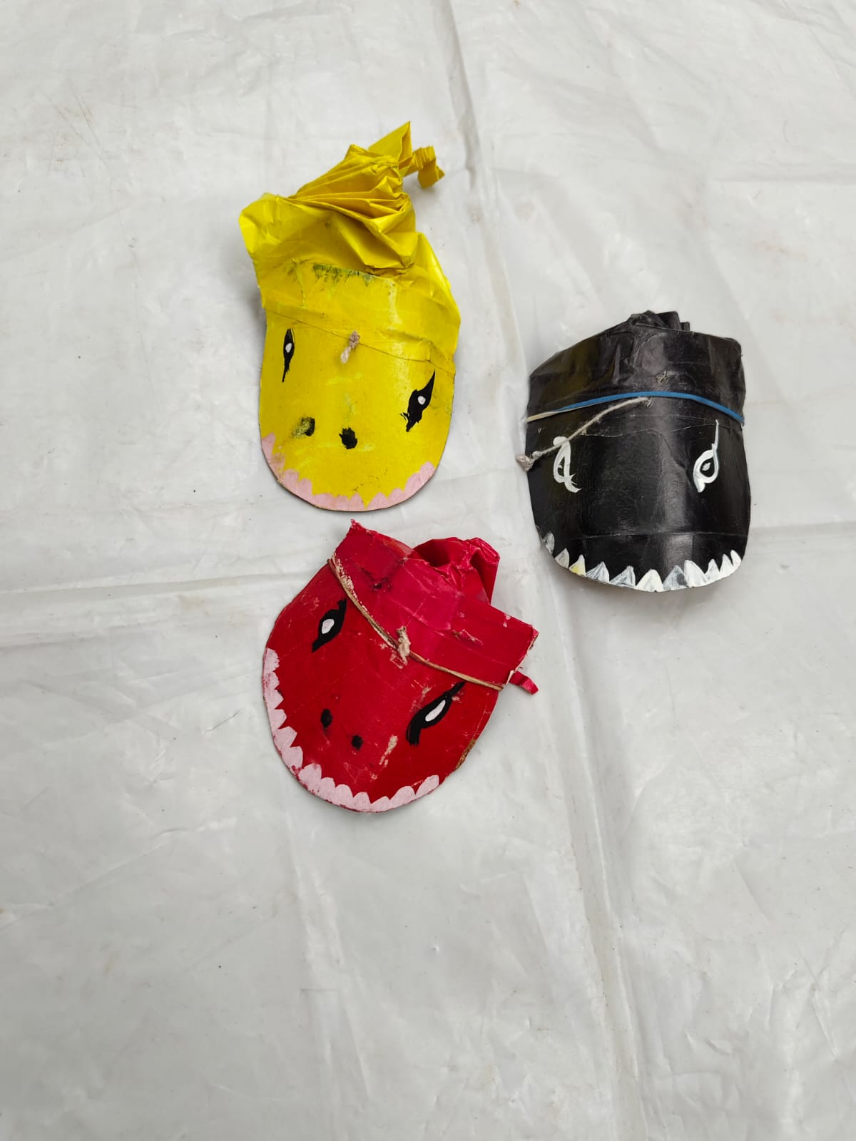 These crafts are likely part of a DIY (Do-It-Yourself) project or children’s activity, possibly inspired by animals like dragons or crocodiles.