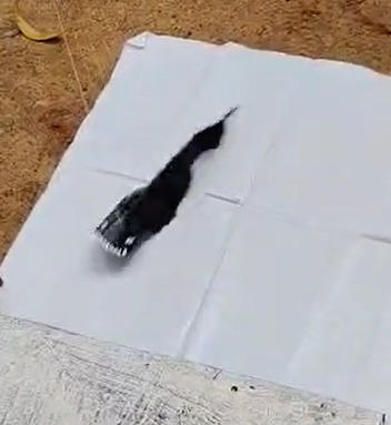 The items feature simple facial details, possibly drawn with a marker, and have serrated edges that might represent teeth or scales.