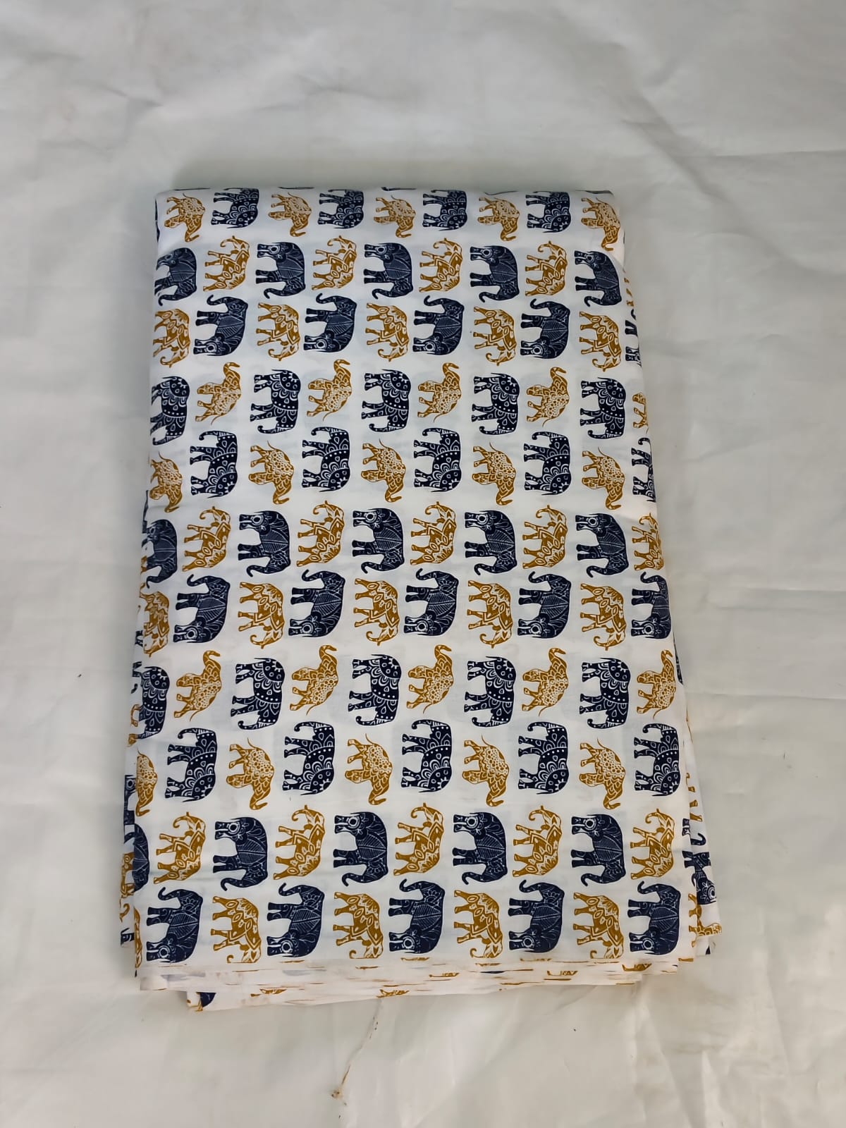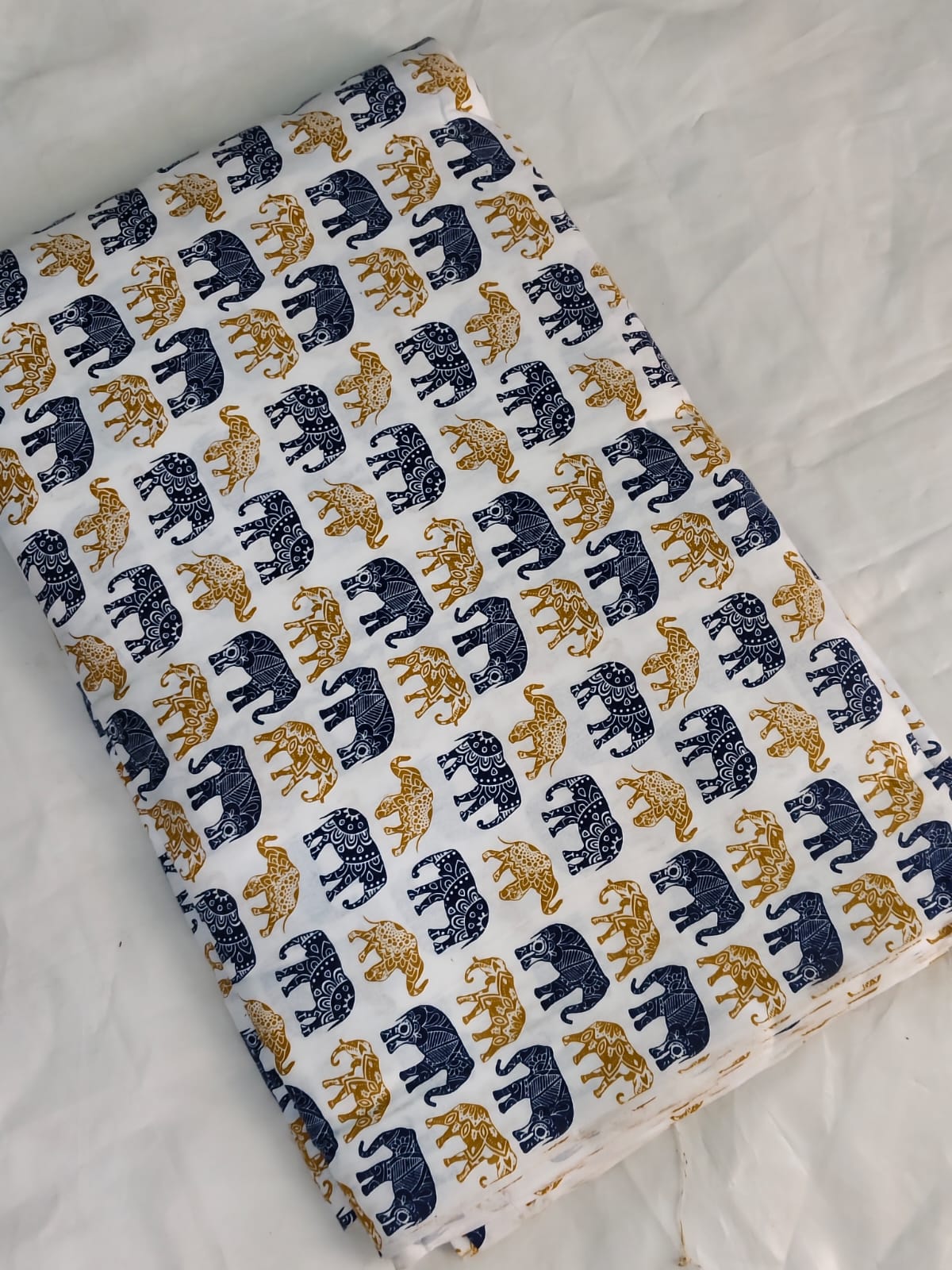 This beautiful Elephant Print Pure Cotton Fabric features a charming ethnic motif pattern on a soft and breathable base. The fabric is gentle on the skin and ideal for comfortable everyday wear.