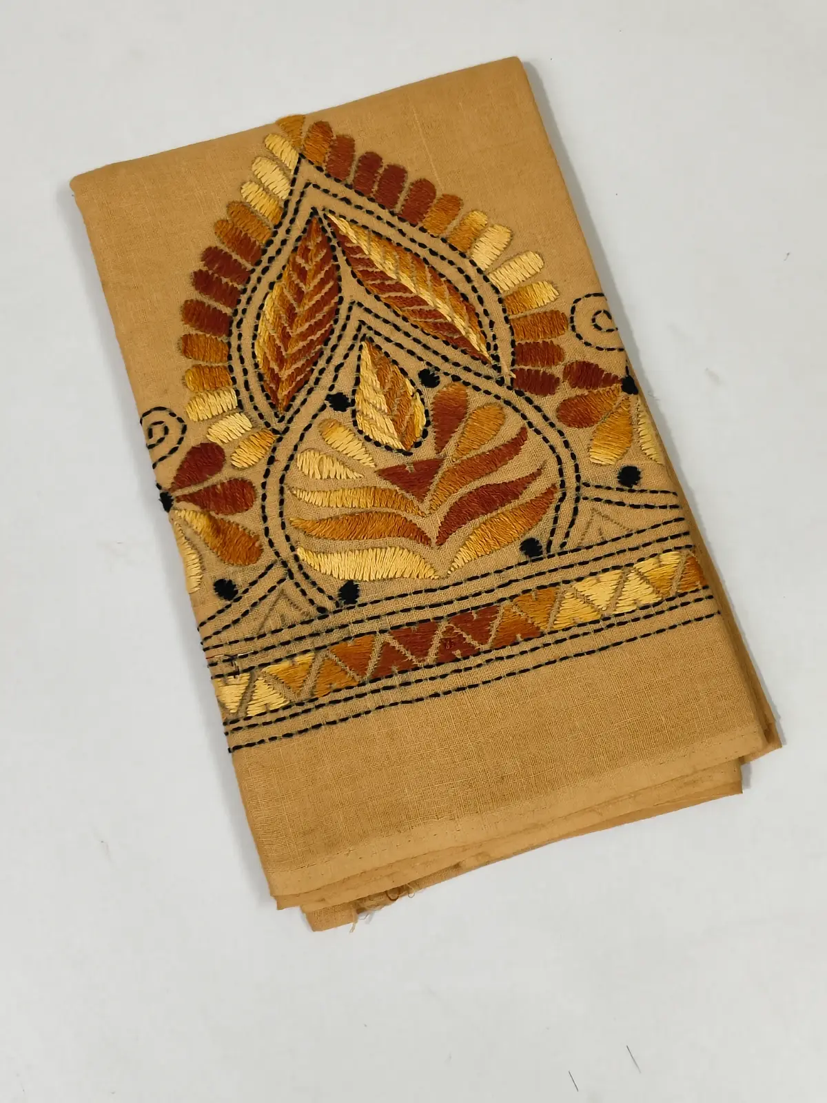 Cotton Hand Work Blouse Piece – Leaf design (Beige )