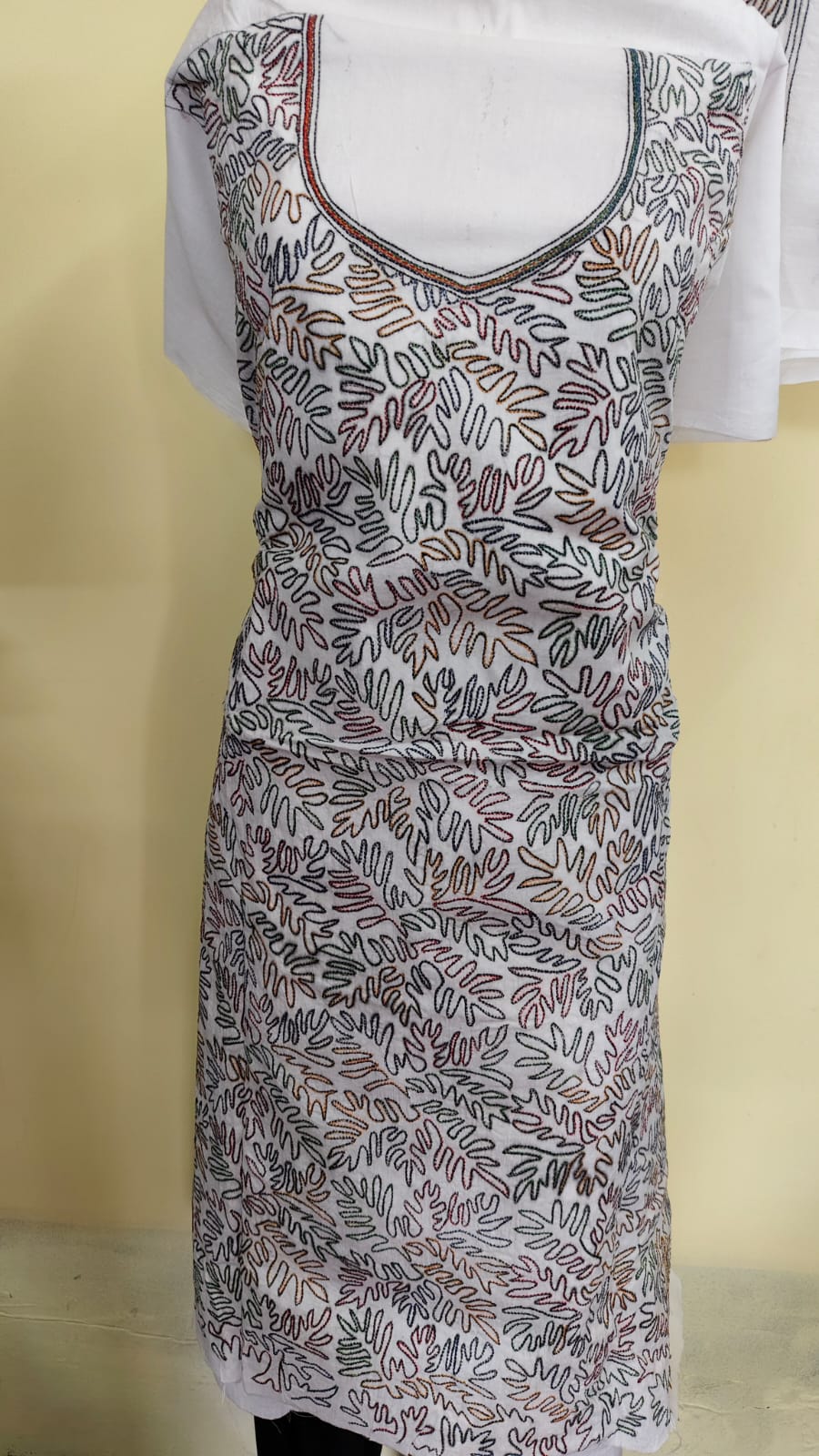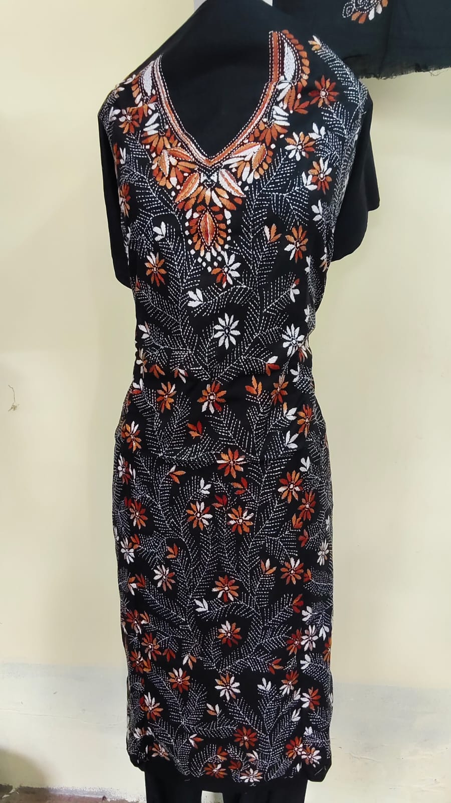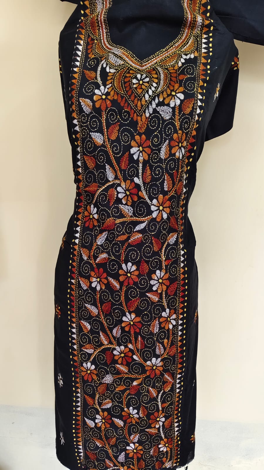 Handcrafted: Cotton Kantha Stitch Salwar Suit Material 3-piece Set, Unstitched Top: 2.5 M, Bottom: 2.5M, Dupatta: 2M, Total length:- 7M, Width: 36 inches (Net Quantity 1 piece set)