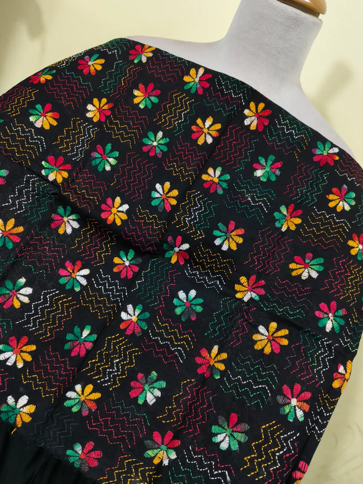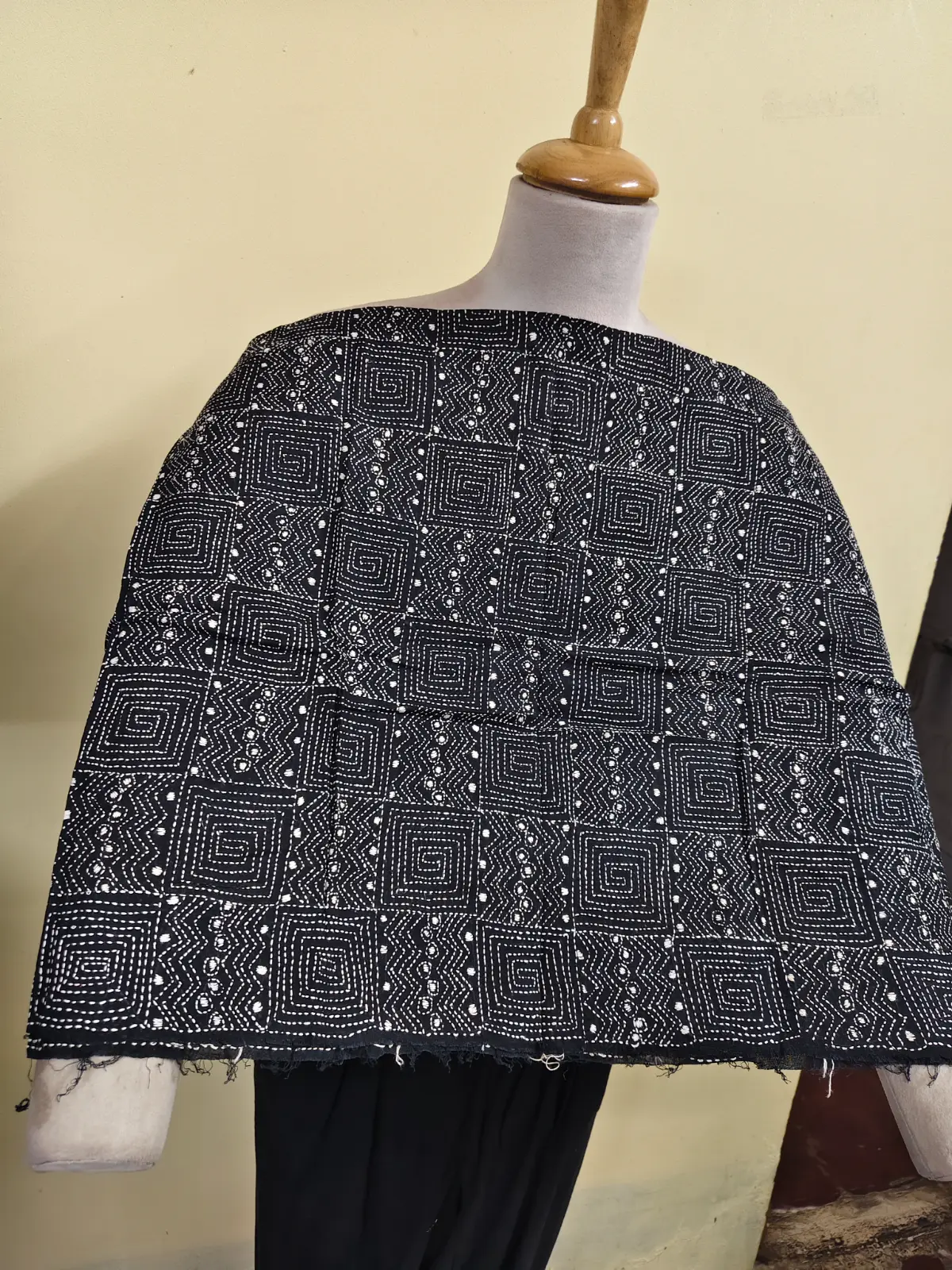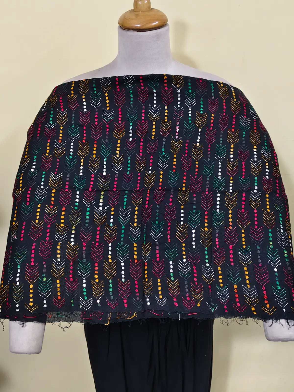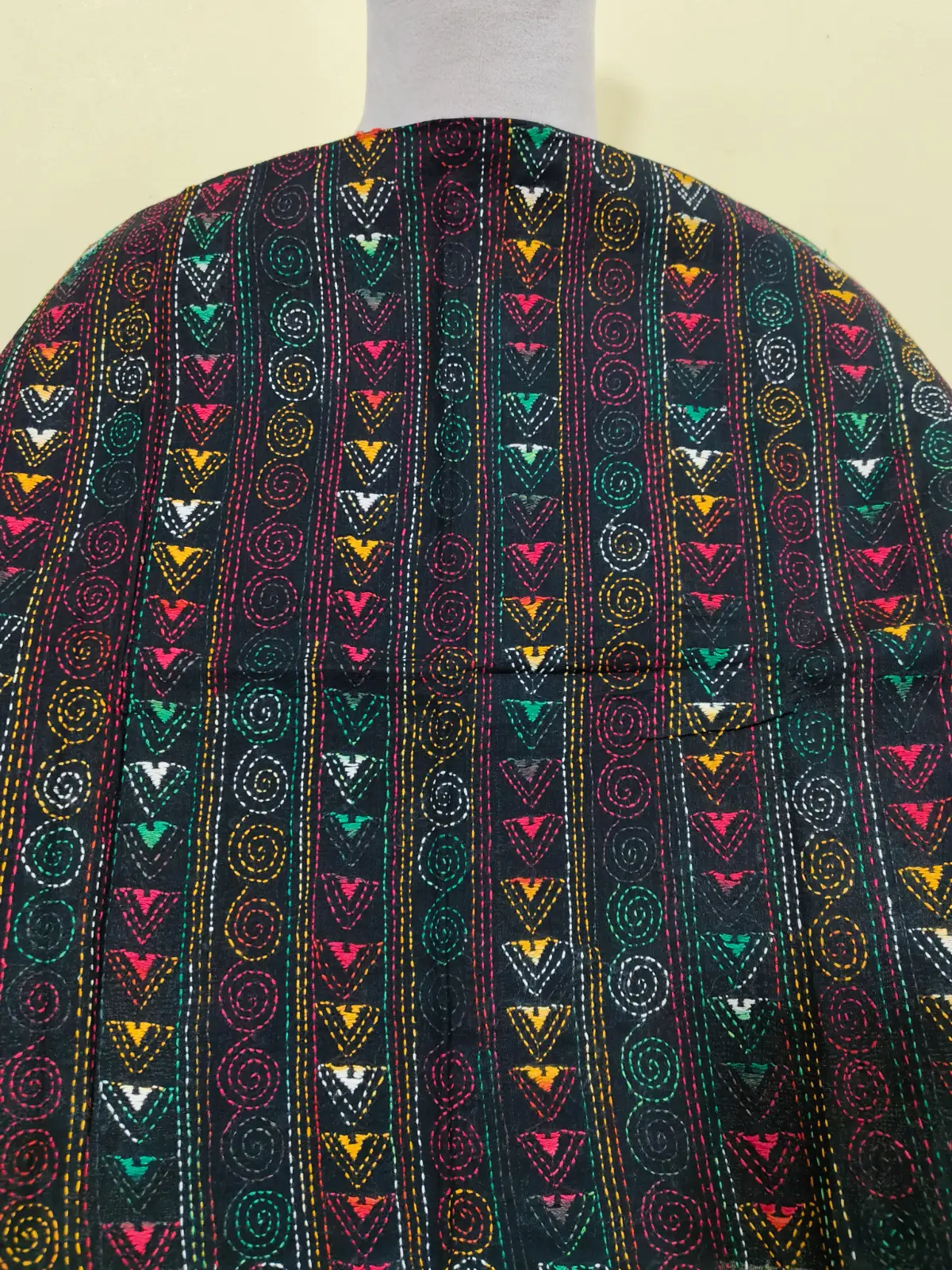 Soft cotton fabric embellished with traditional Bengal Kantha hand embroidery.