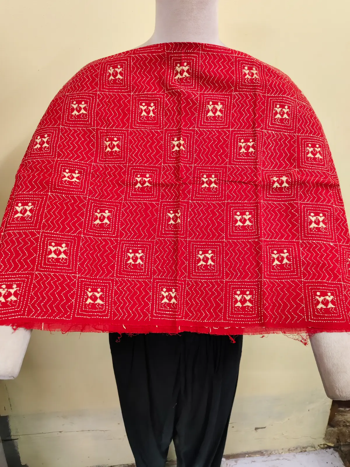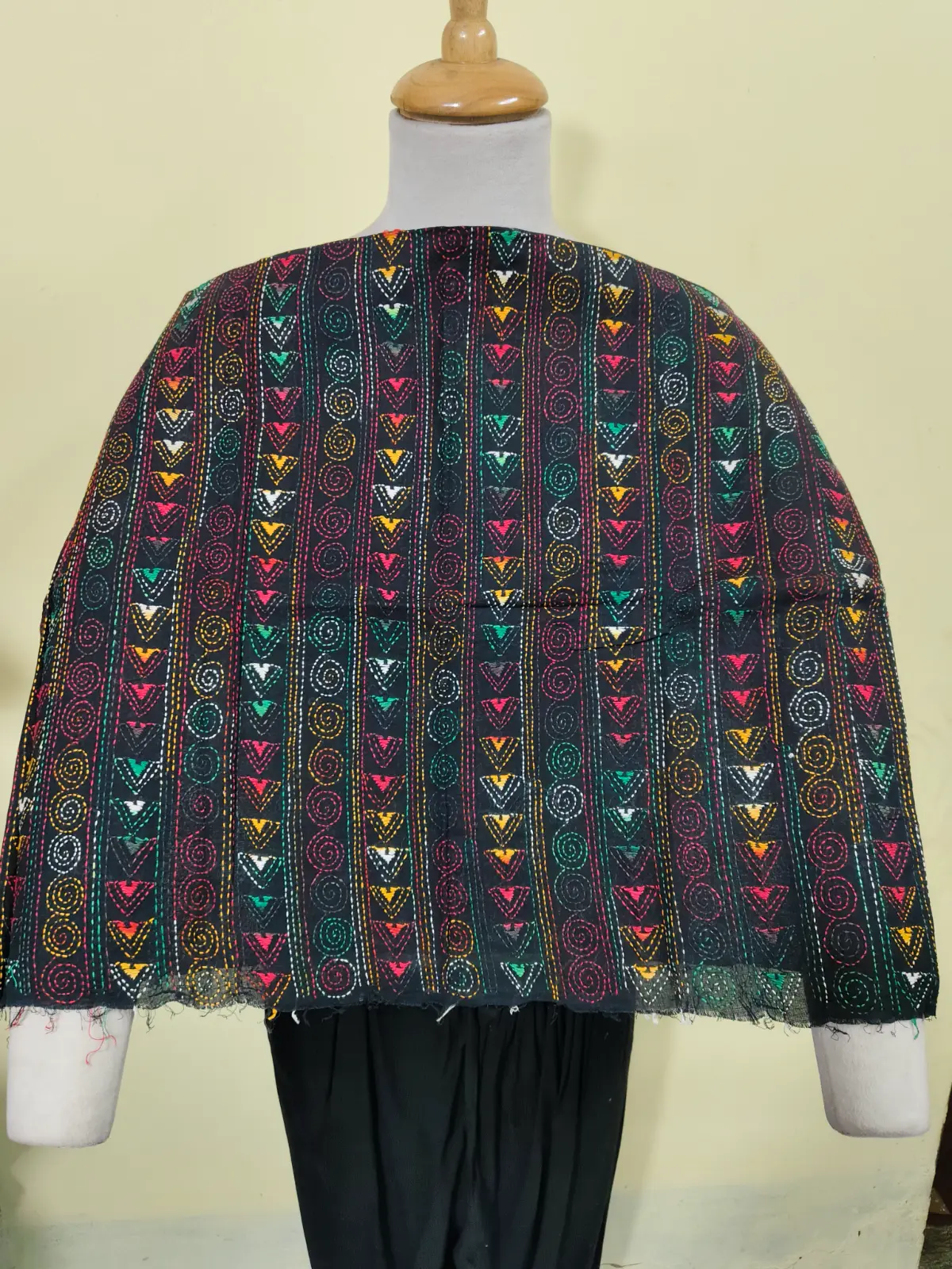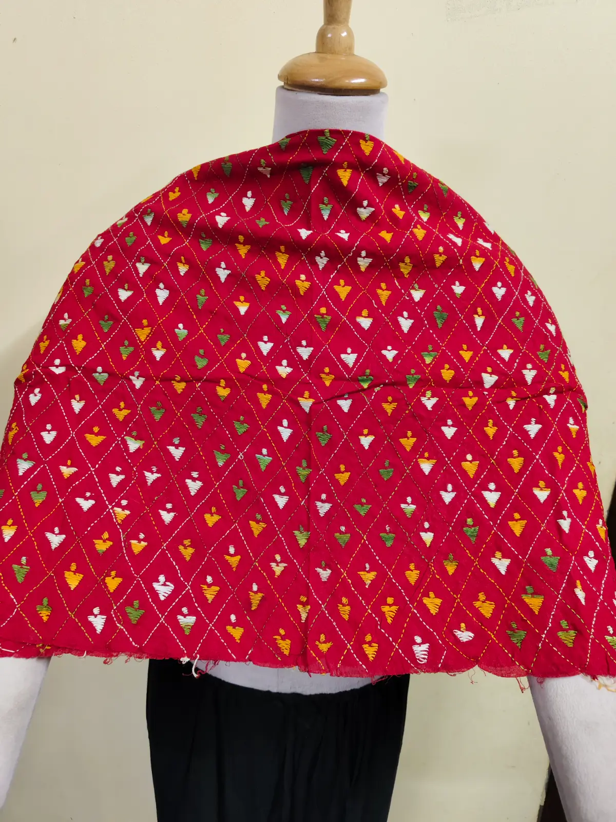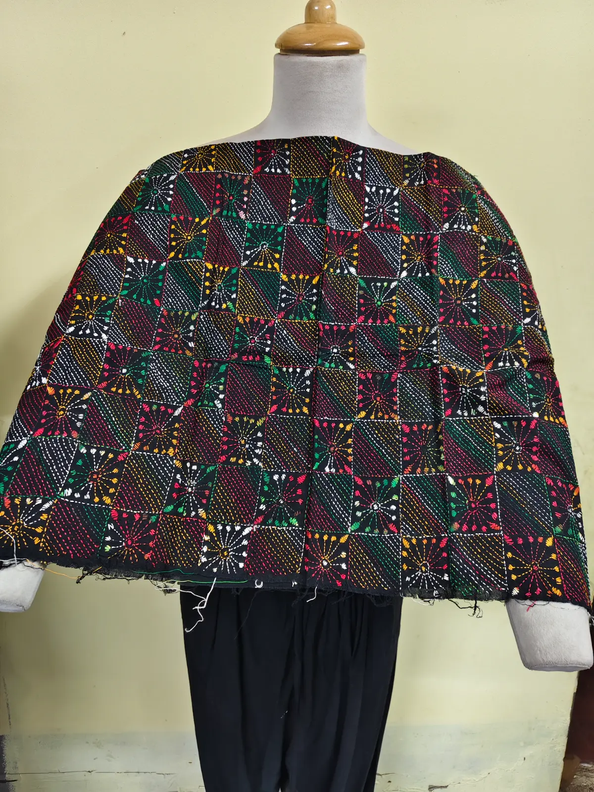 Soft cotton fabric embellished with traditional Bengal Kantha hand embroidery.