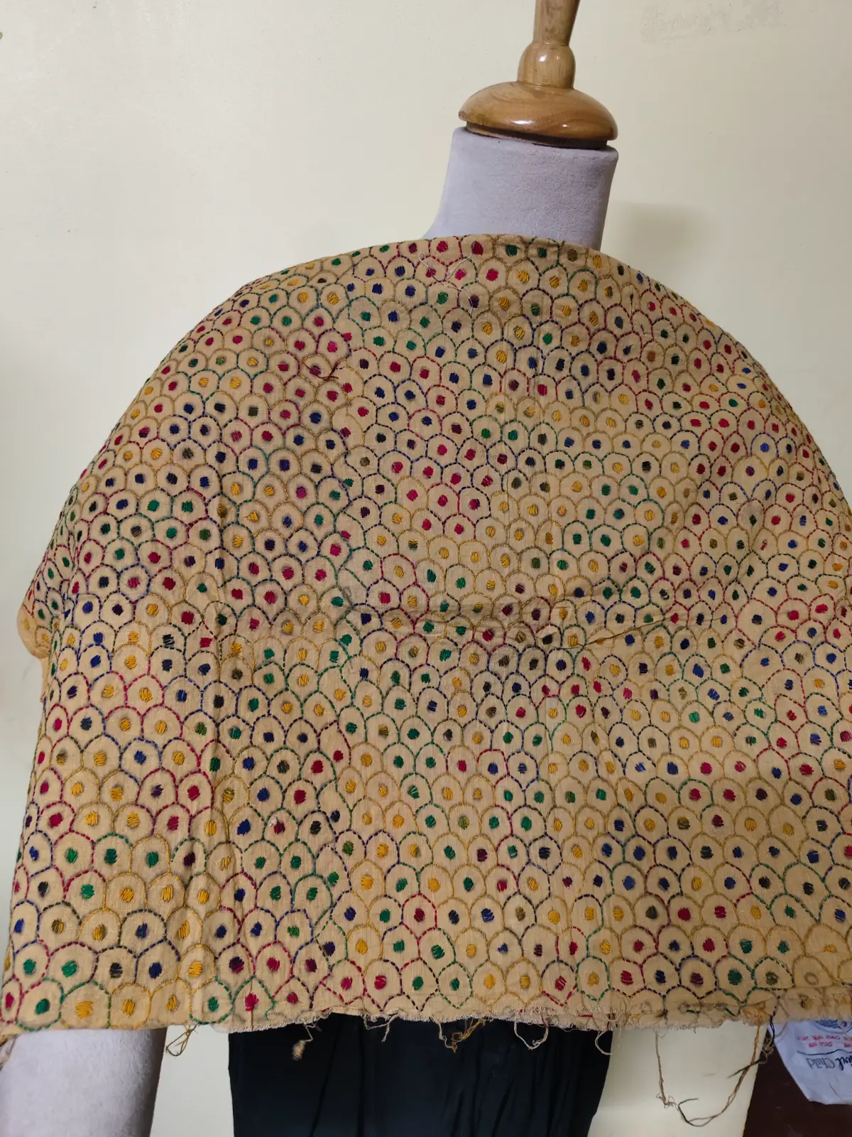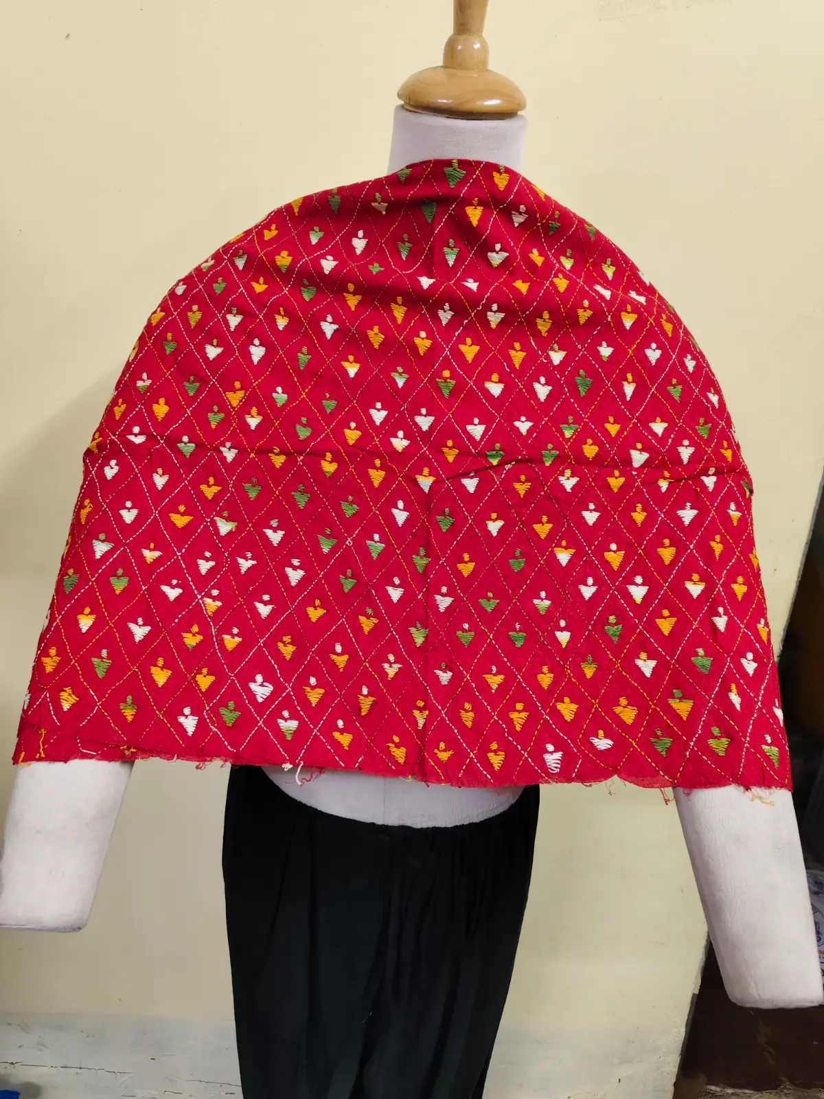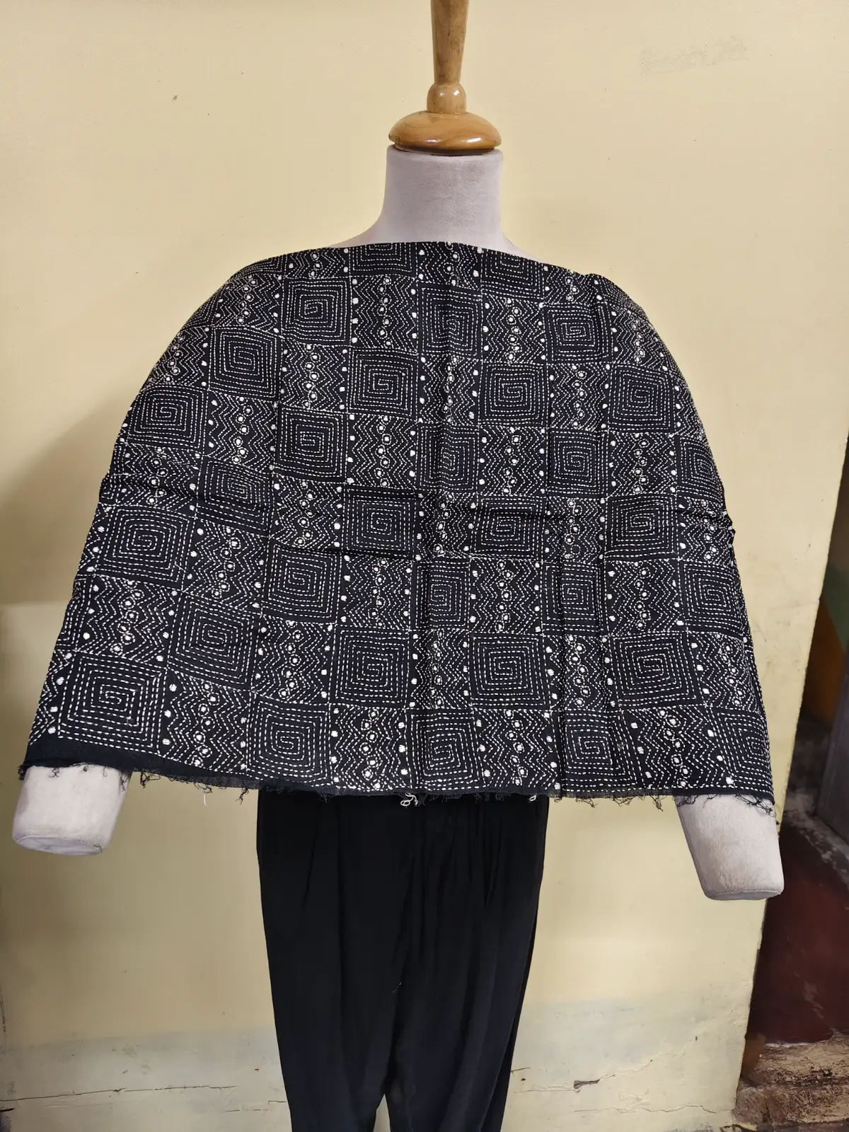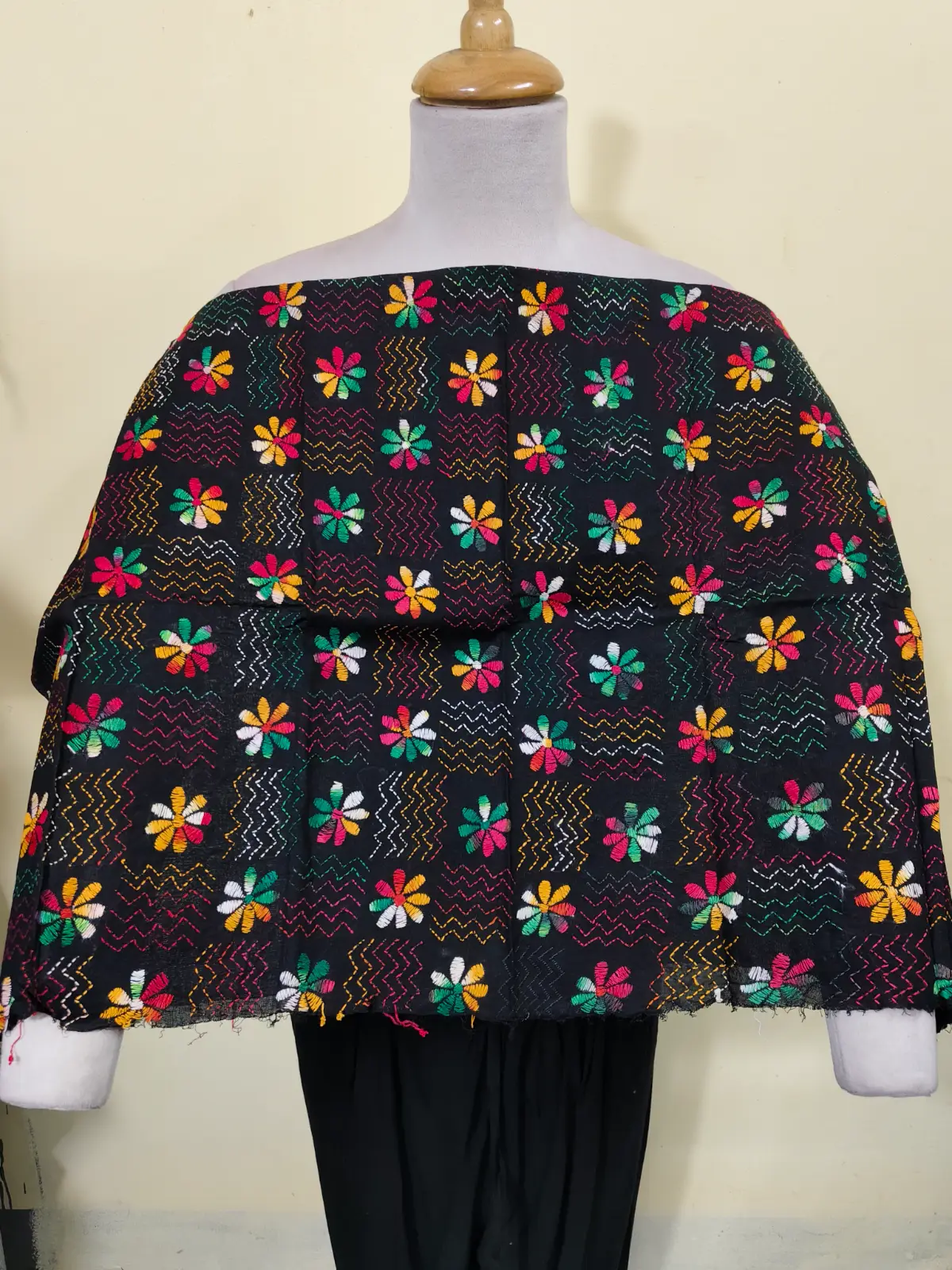 Soft cotton fabric embellished with traditional Bengal Kantha hand embroidery.