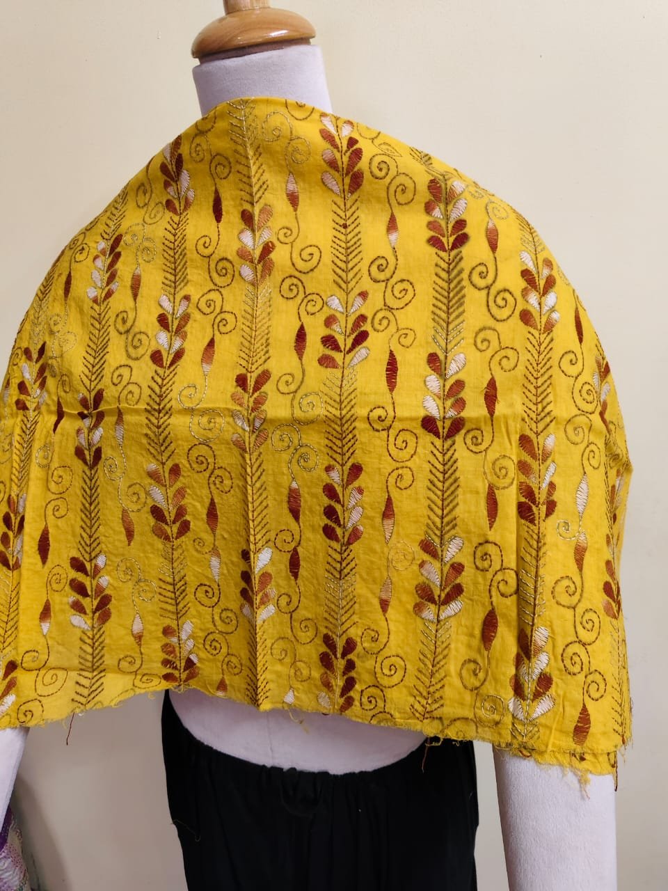 Soft cotton fabric embellished with traditional Bengal Kantha hand embroidery.