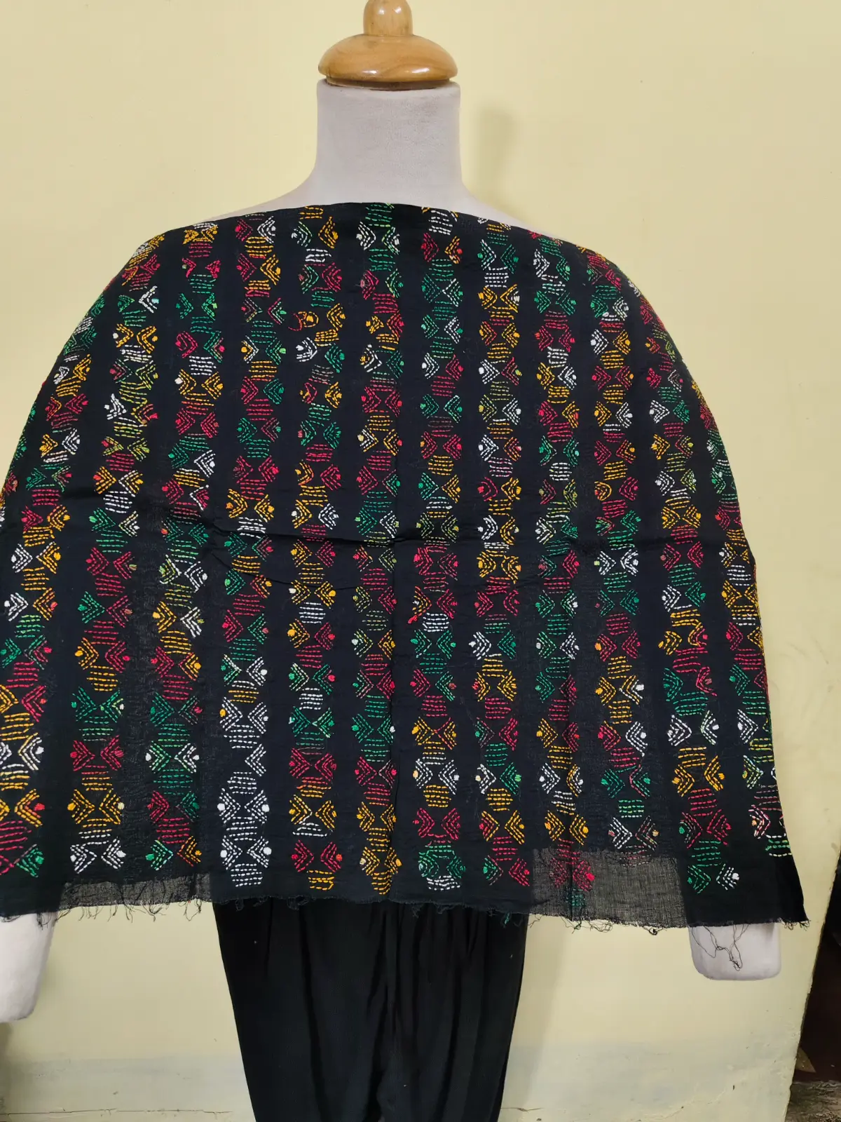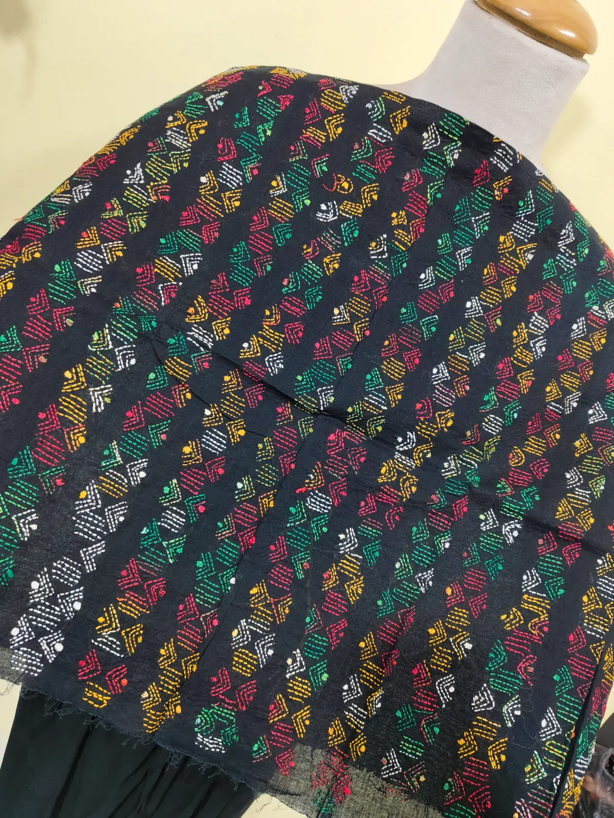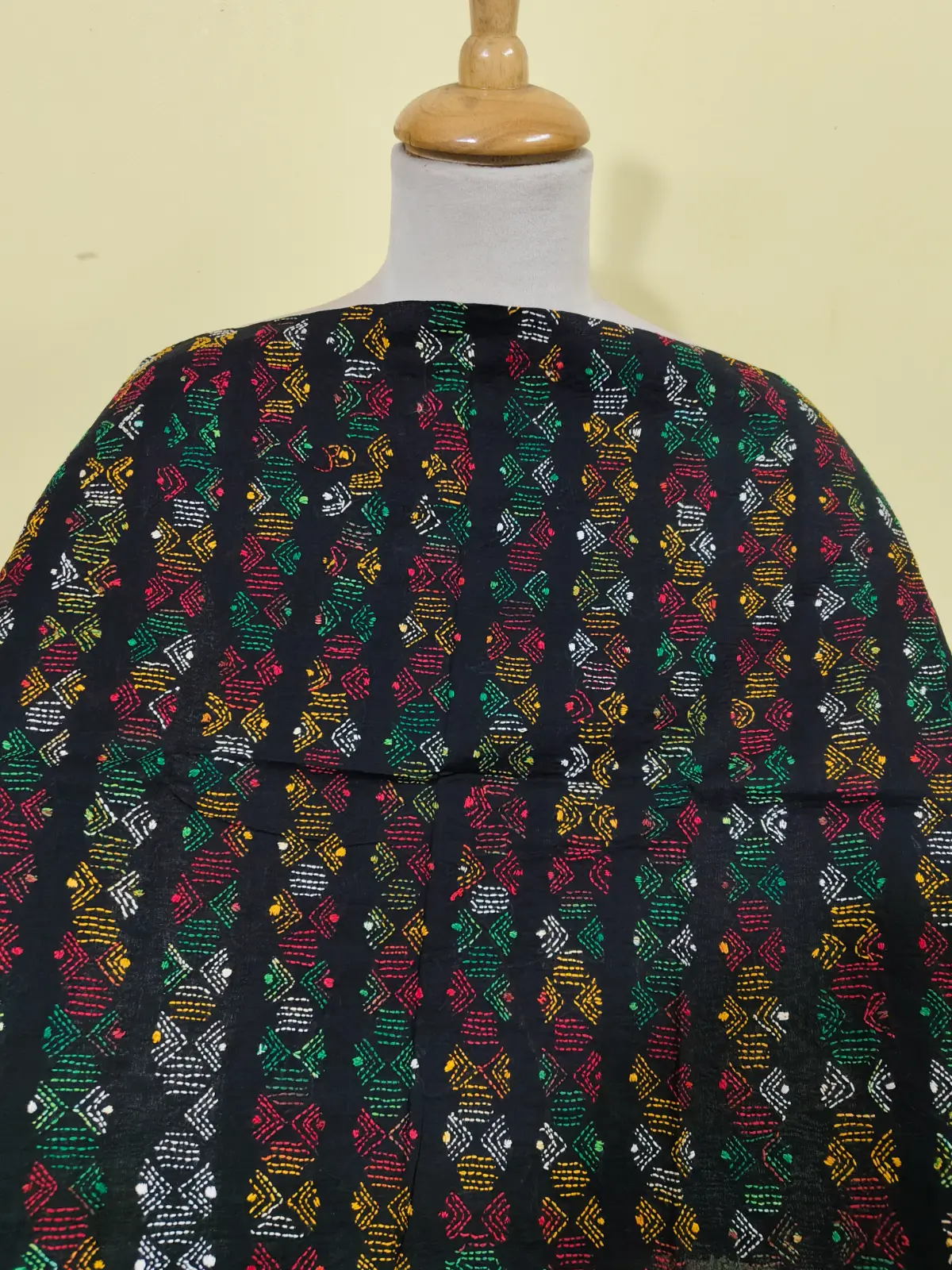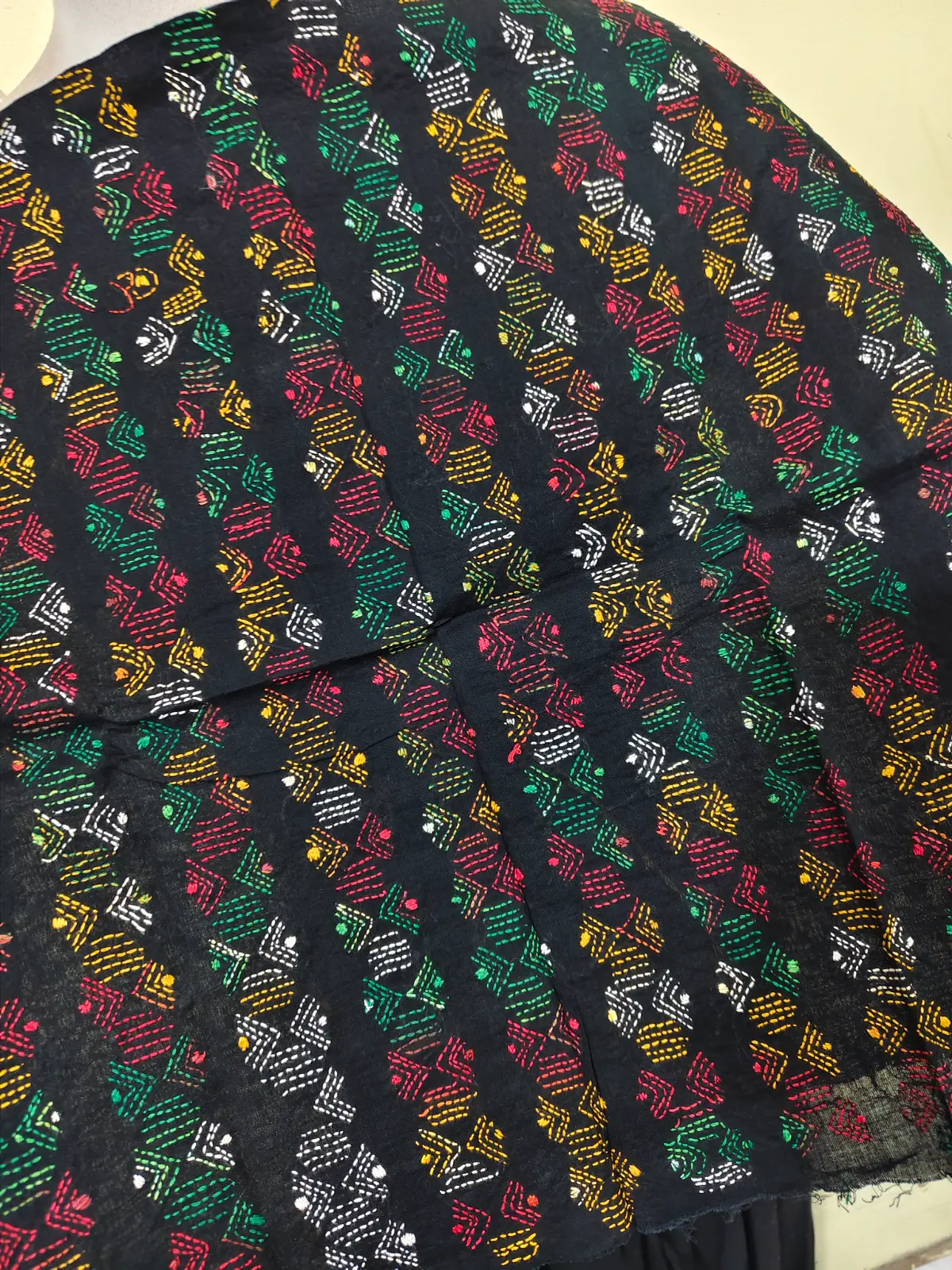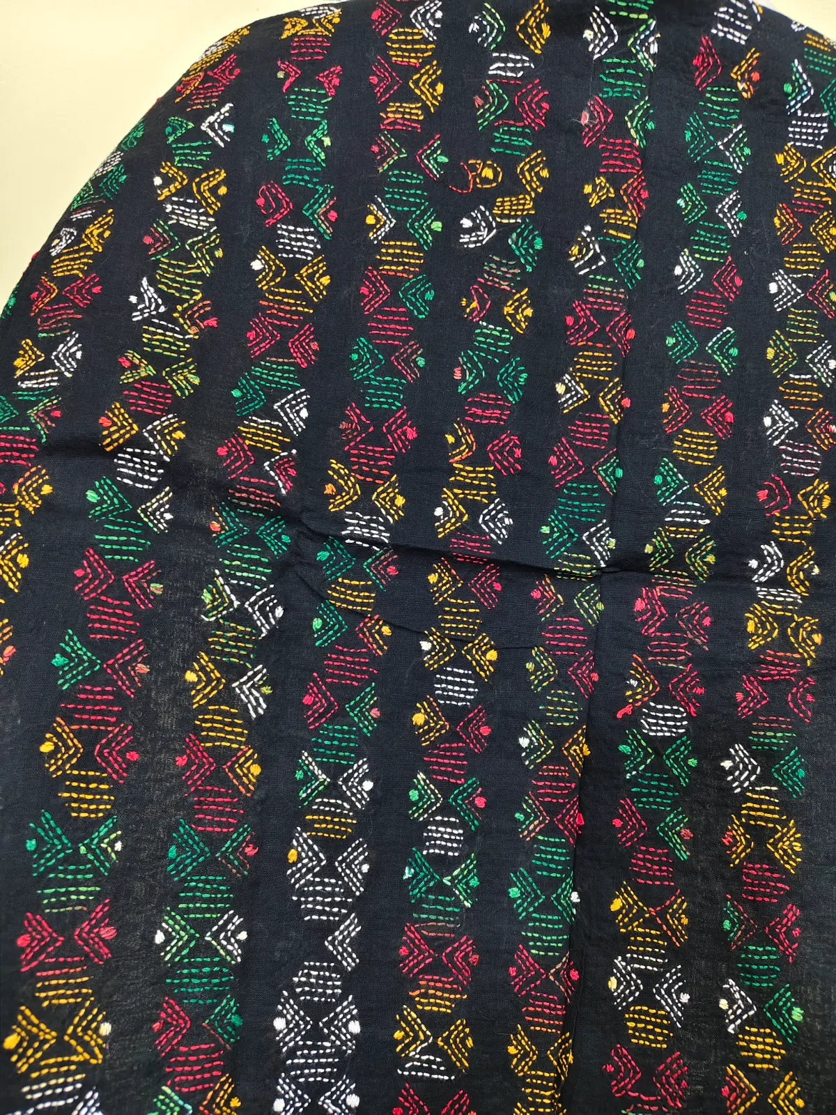 Soft cotton fabric embellished with traditional Bengal Kantha hand embroidery.