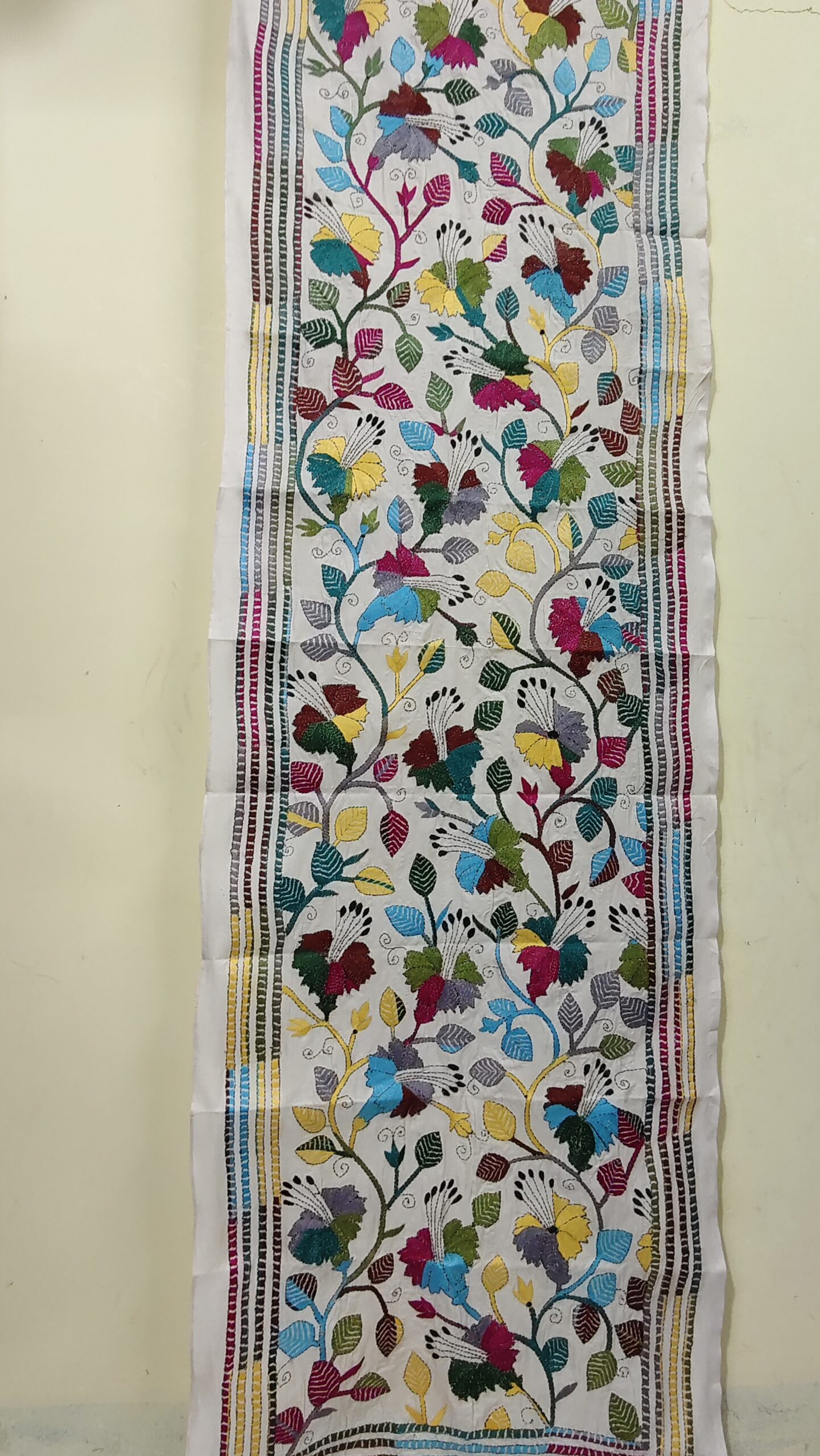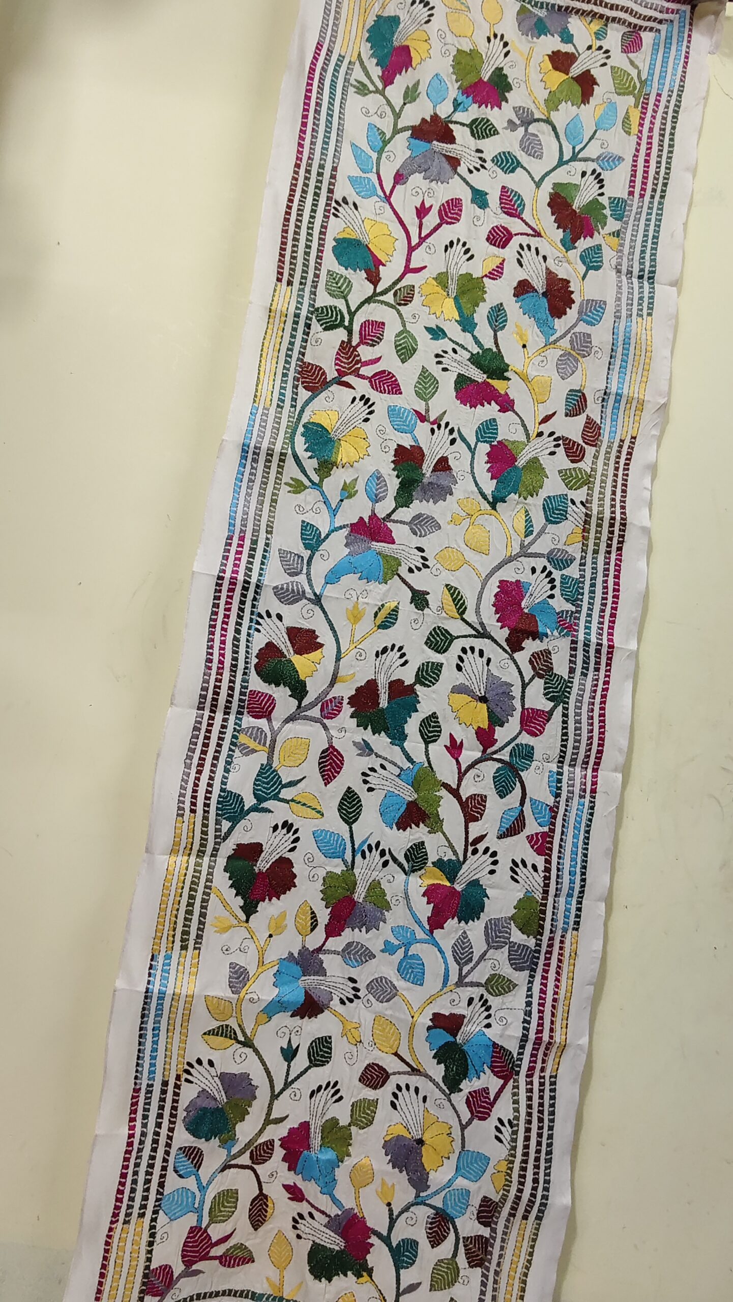 Handicraft: Tussar Silk Kantha Stitch Stole for women and girlsΒ  πŸ“ Size: Length – 2.22 Meter, Wide – 22 Inch, (Quantity 1 piece)