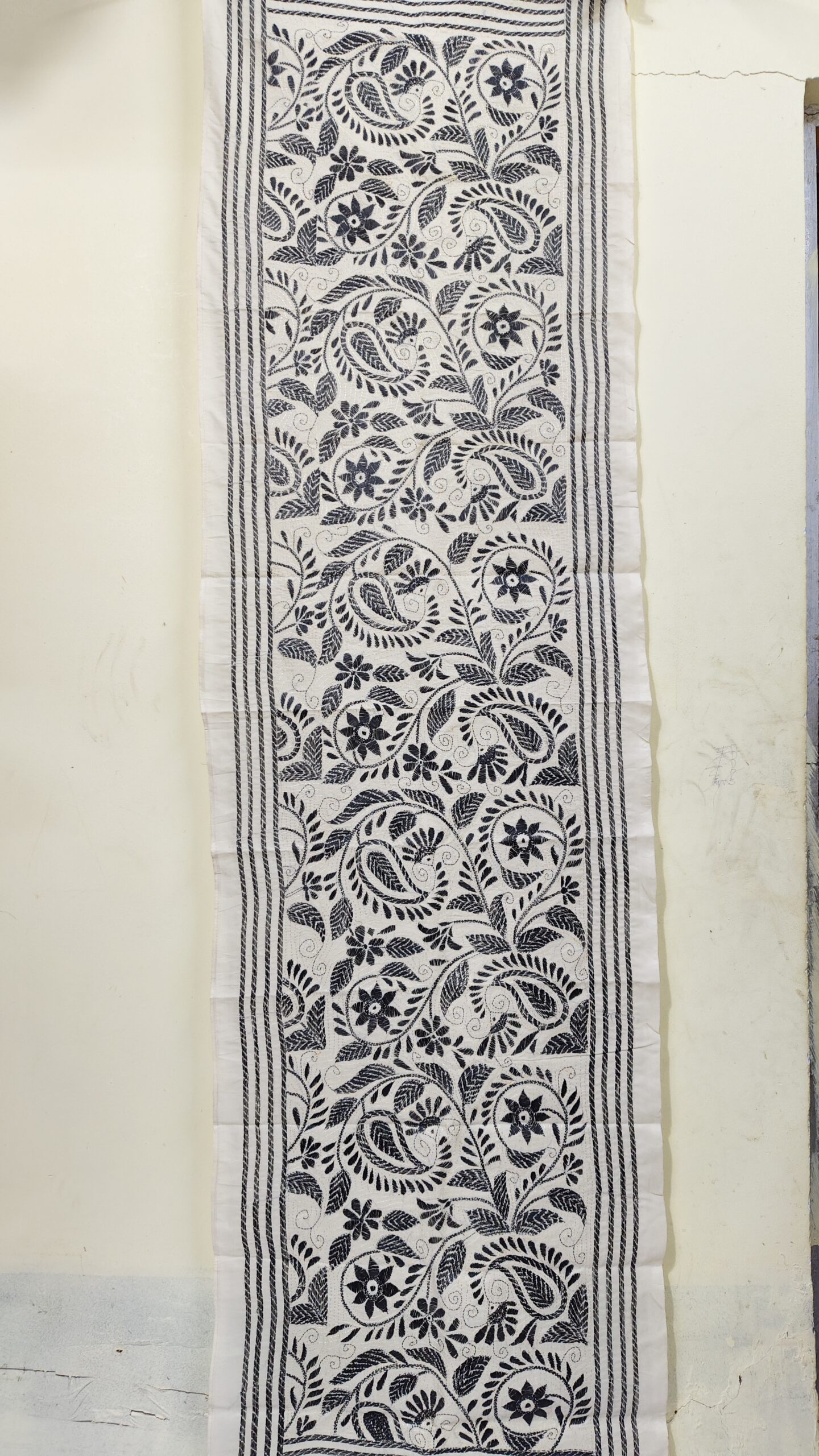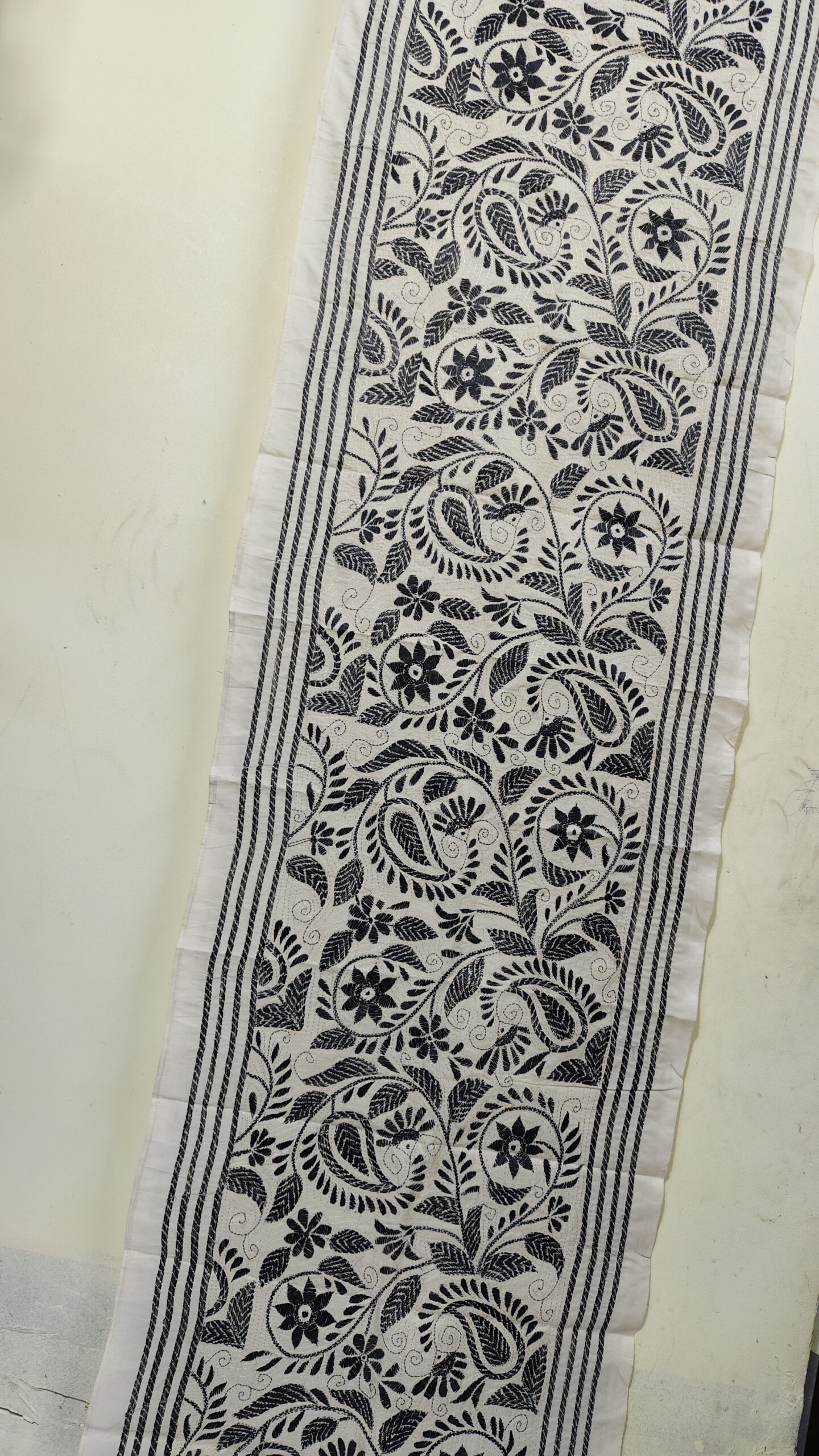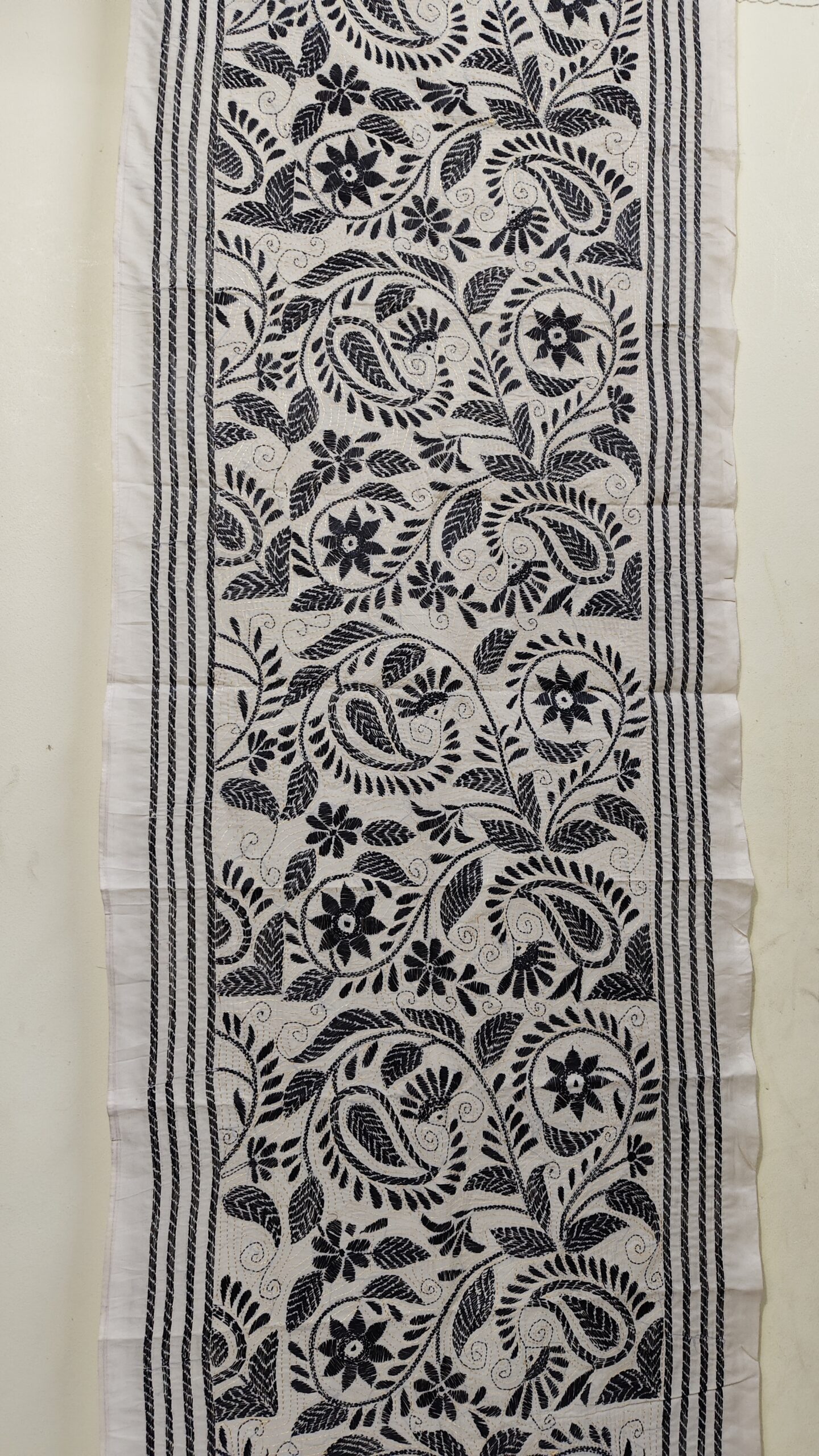 D Tussar Silk Off-White Kantha Stitch Stole β Handcrafted Ethnic Dupatta