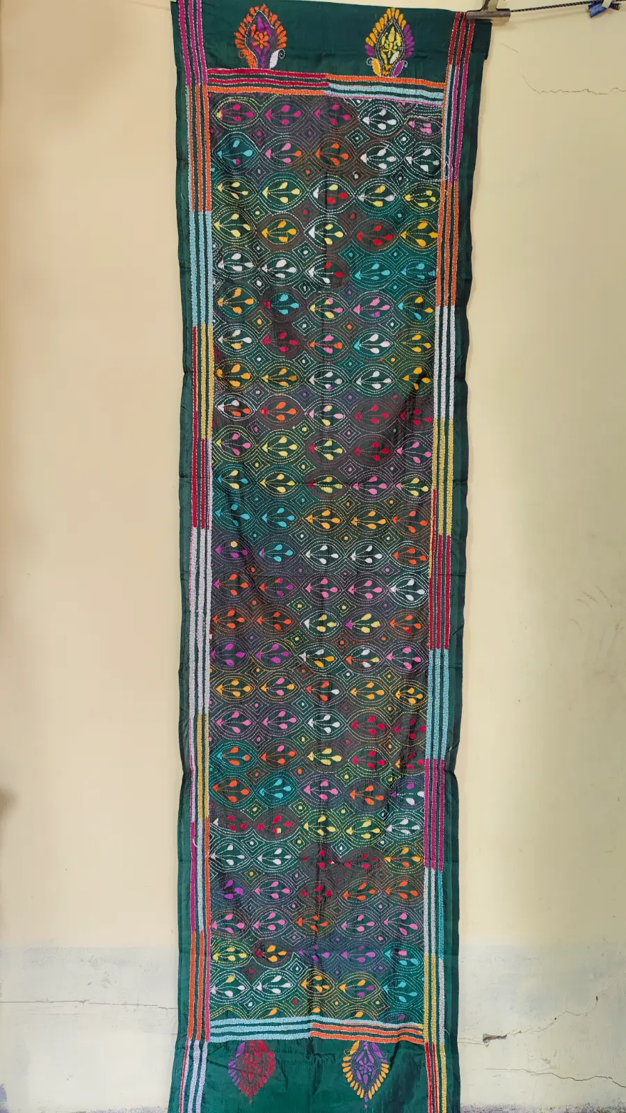 Handicraft Kantha Embroidery Stole, Size: Length – 2.15 Meter, Wide – 22 Inche, (Dark Green ) (Quantity 1 piece)