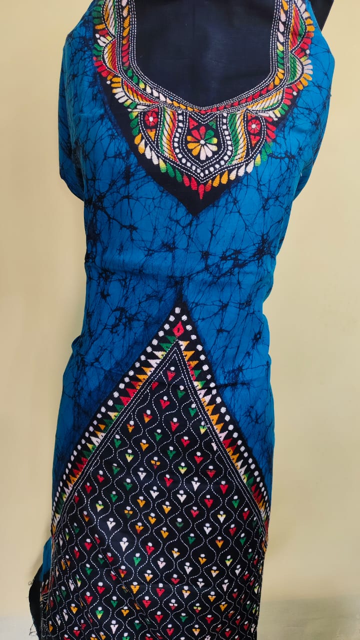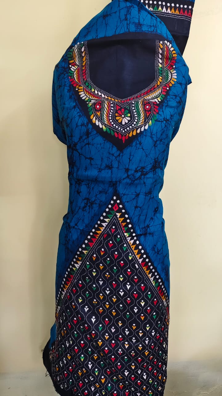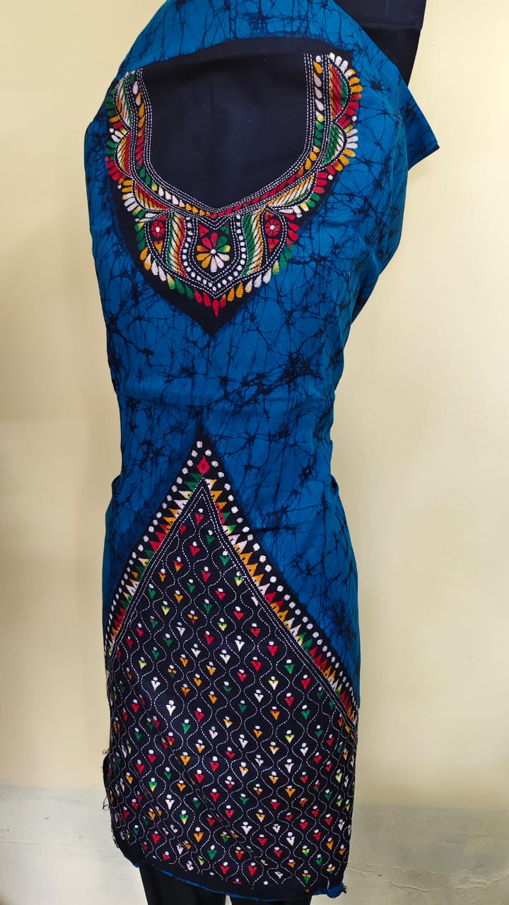 Kantha Stitch Batik 3-piece dress material set unstitched 7 meters made of 100% cotton. Top: 2.5 Meters, Bottom: 2.5M, Dupatta: 2M, Total length:- 7M, Width: 36 inches (Net Quantity 1 piece set)