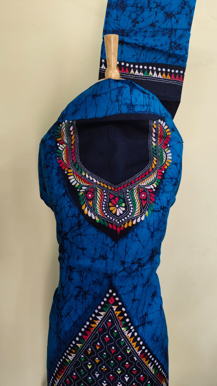 Deep Blue Pure Cotton Kantha Batik Salwar Suit 3Piece