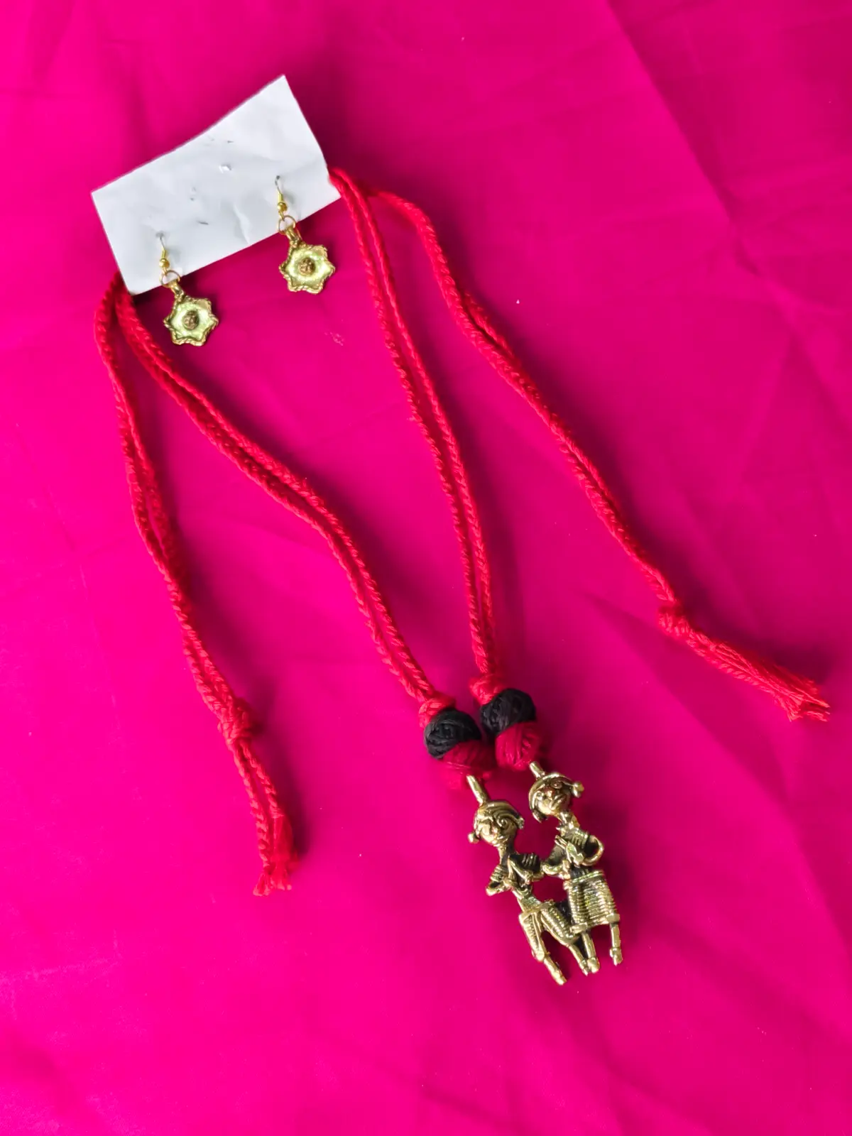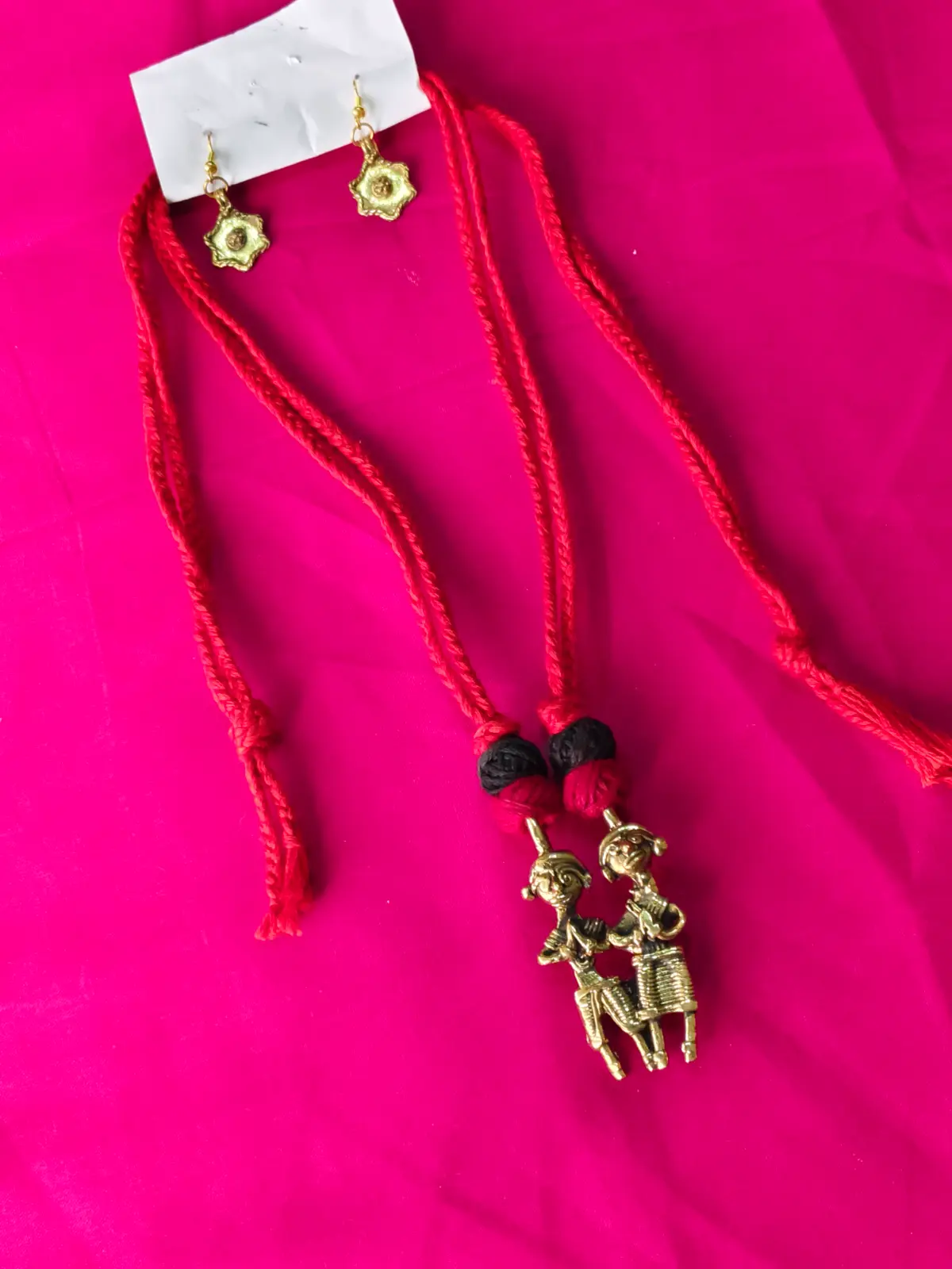 Handcrafted Dokra Brass Tribal Doll Motif Design Pendant Necklace Set | (Quantity 1 piece)