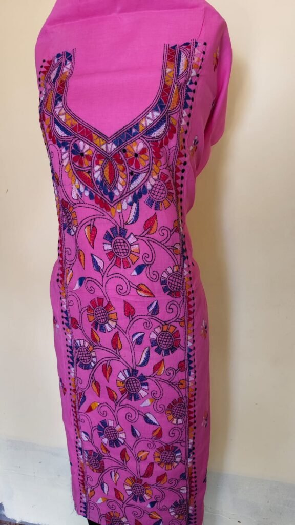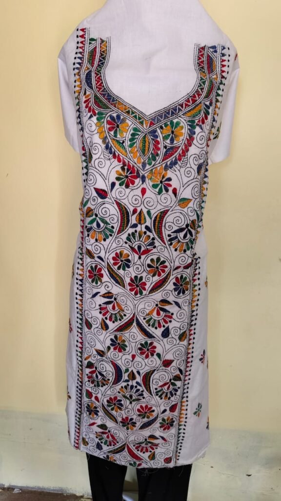 Pure Cotton Kantha Stitch Salwar Suit Material –  White Base (Unstitched 3pc Set)