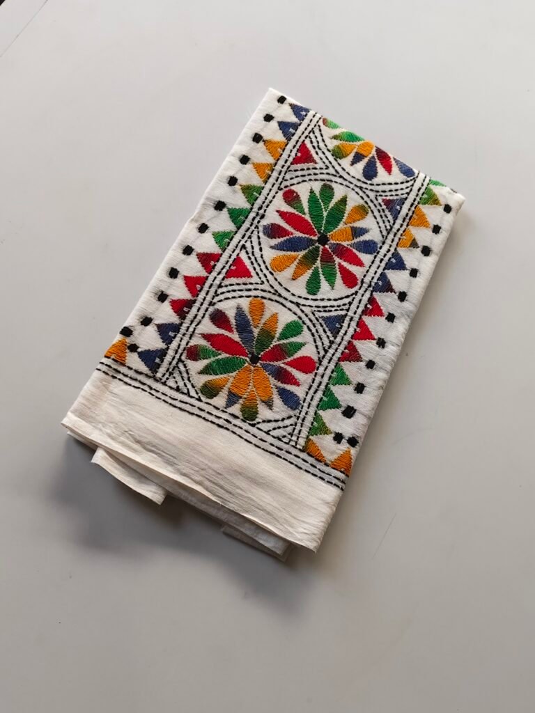 Add a unique traditional touch to your saree outfit with this hand embroidered blouse piece. Made from high quality cotton fabric, this blouse piece is made with colorful threads and hand embroidered with attractive designs. Each embroidery is perfectly handmade, which will make your look more stylish and unique.