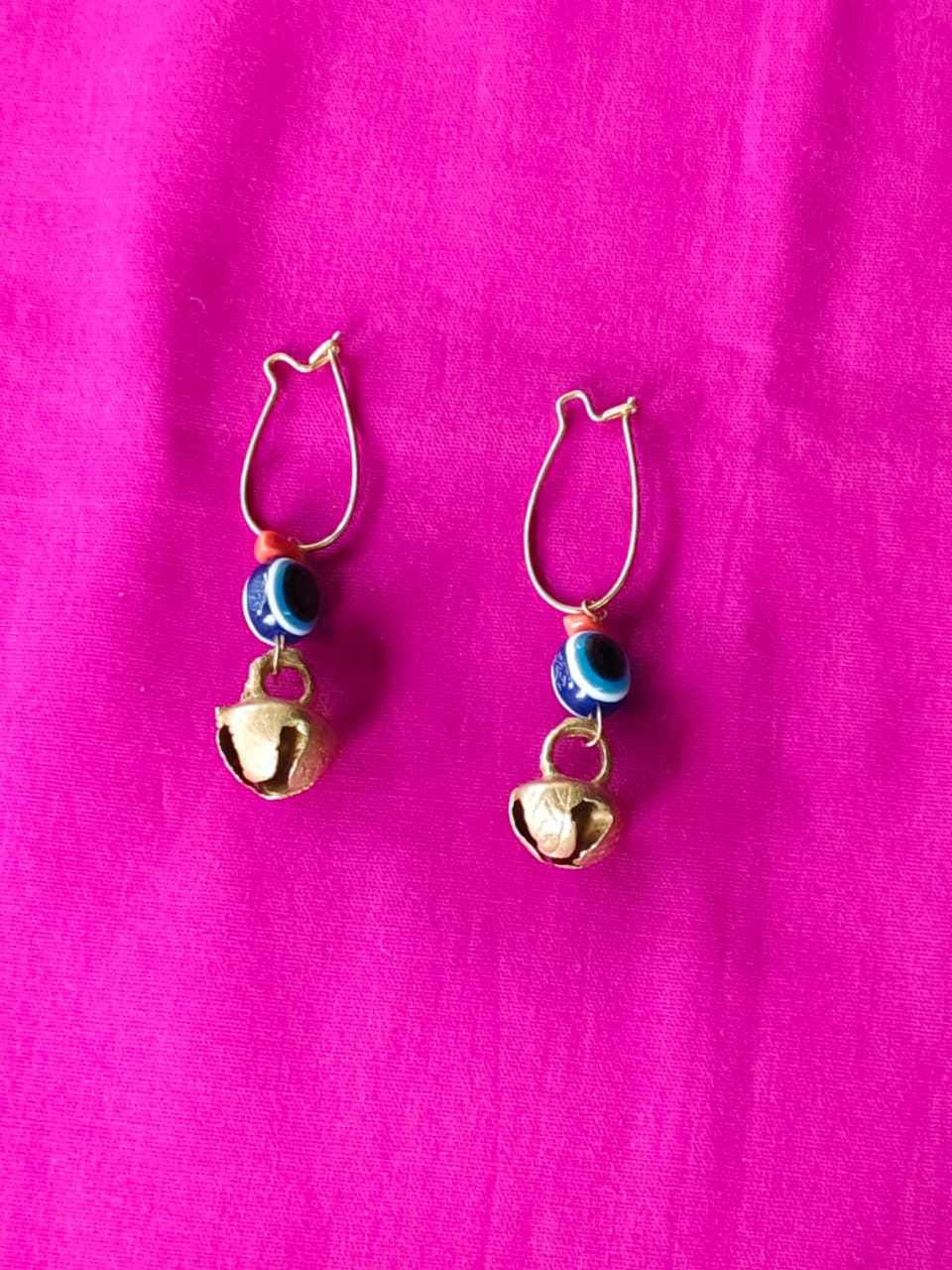 Handcrafted Ghungroo Brass Hoop Earrings – Teardrop Wire, Antique Gold – For Women and Girls (Contents: 1 Pair of Earrings)