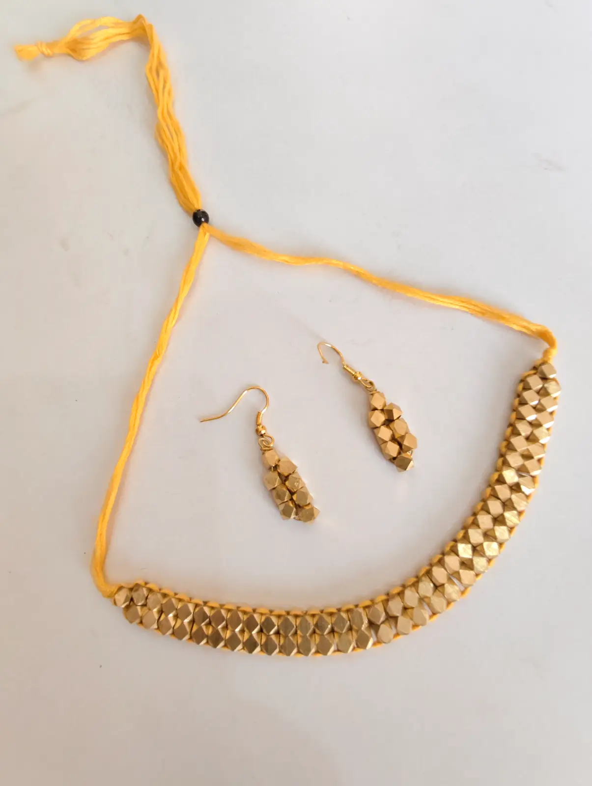 Golden Beads Choker Necklace Set with Matching Earrings – Yellow Thread Design