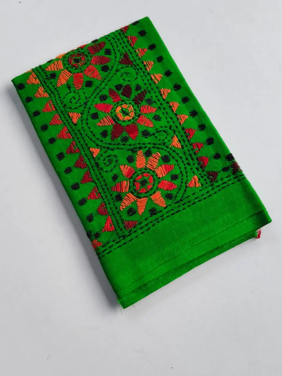 Handicraft:- Both hands work in border style, Handicraft work is being done in border style on the back of the blouse, Beautiful Handicraft Kantha Stitch Embroidery Blouse Material.