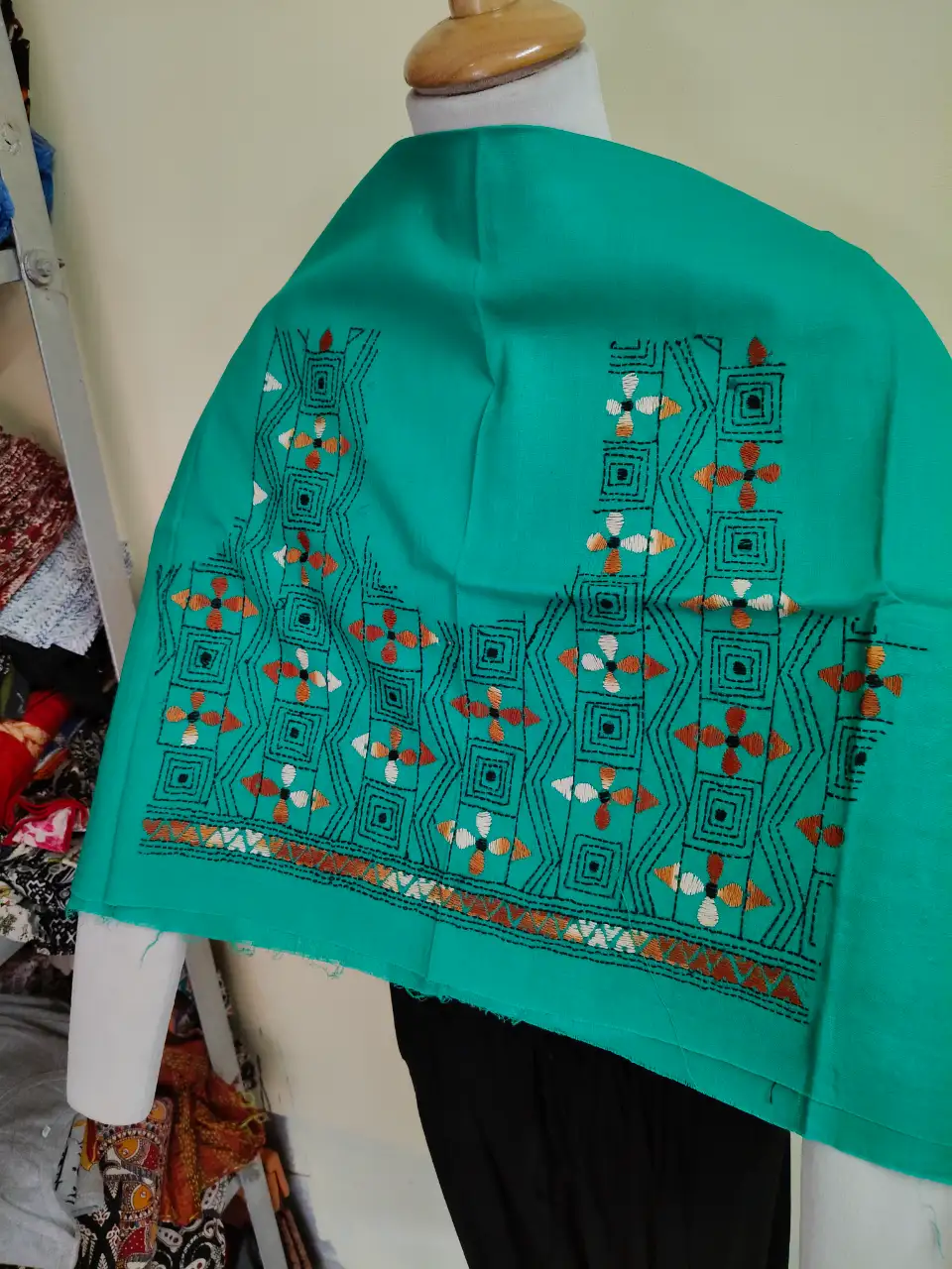 Handmade:-  Premium Cotton Kantha Blouse Material, The back Side is Worked in Border Style, and Both Hands are Worked in Border Style (Quantity 1 Piece)