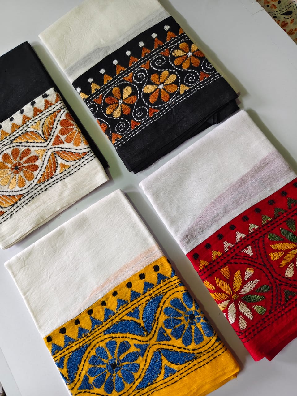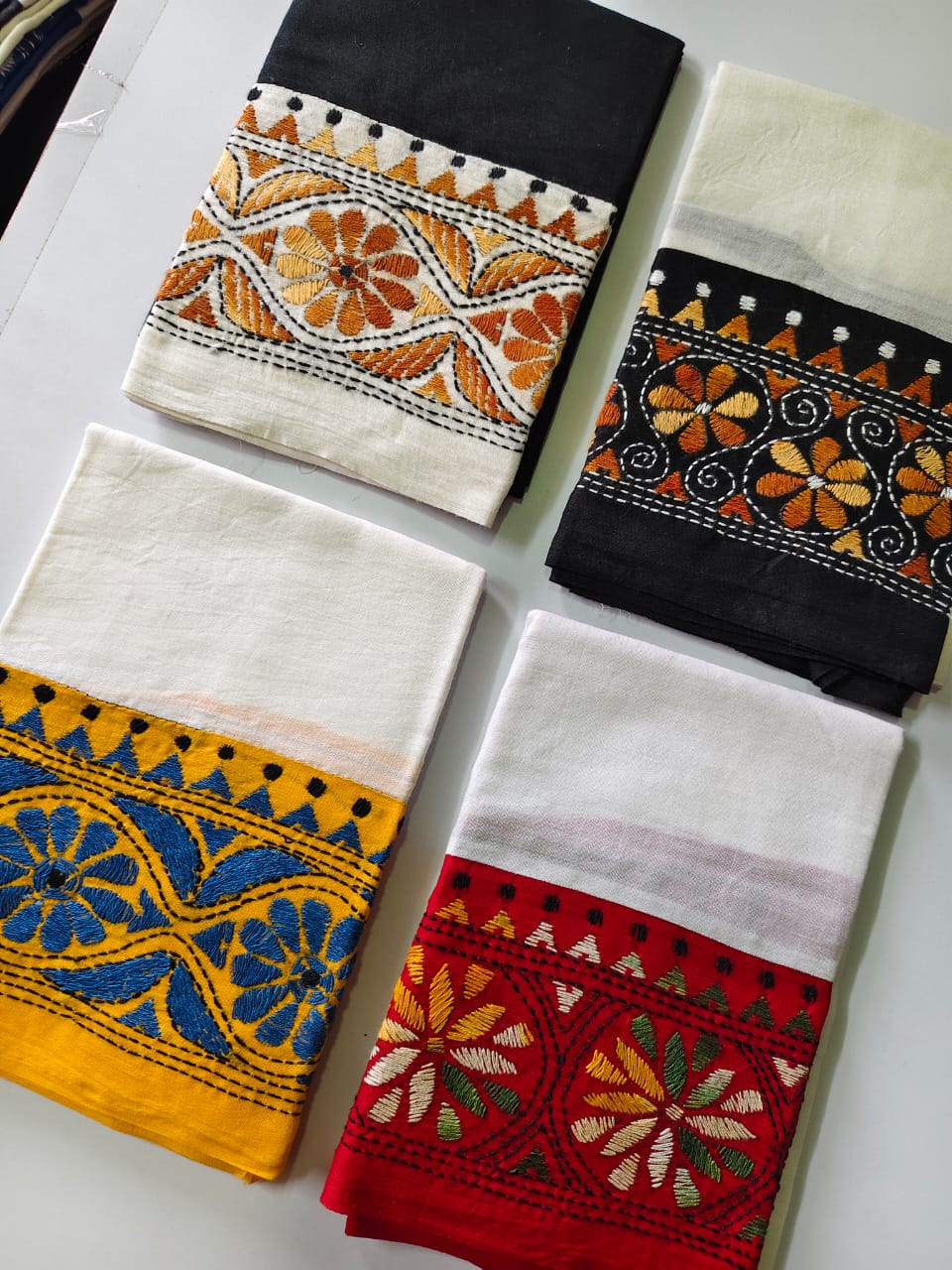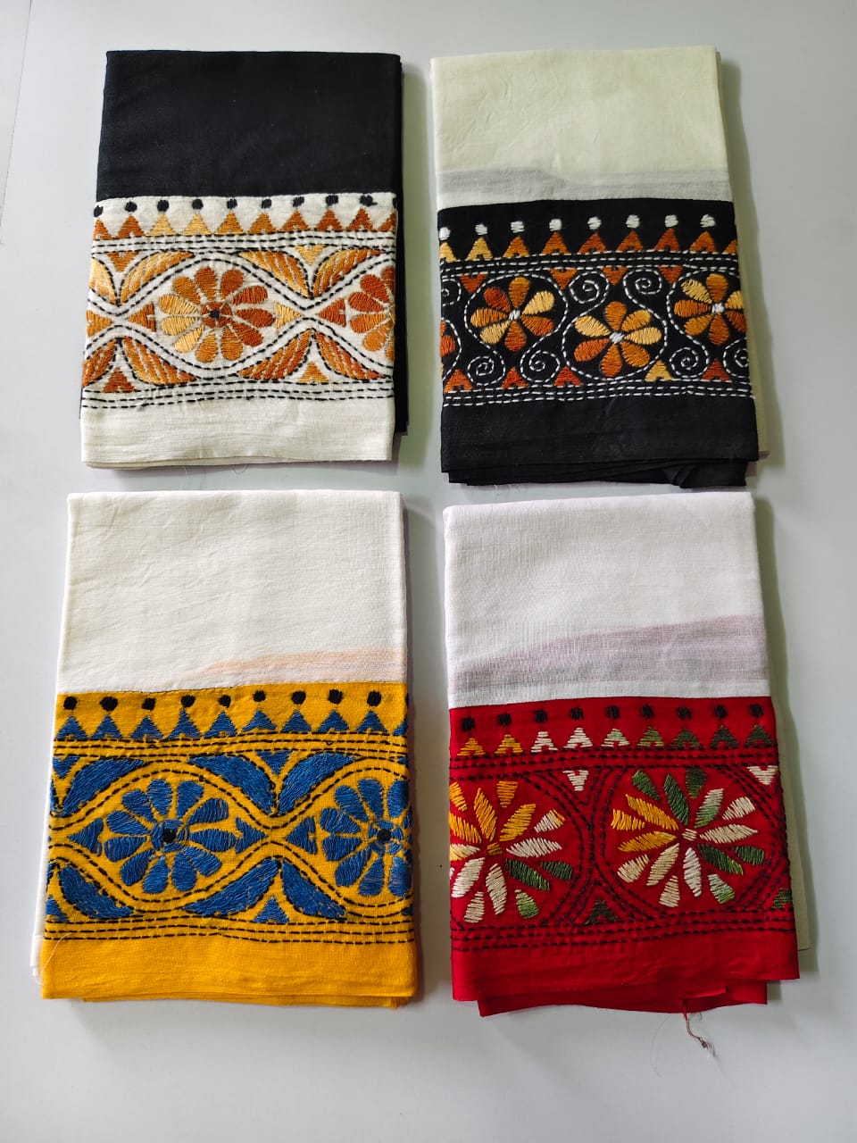 (Different Color 4 pieces) | only Sides of hands and back border style handwork Kantha stitch | Material:- pure cotton (fabric scope) better quality cotton.