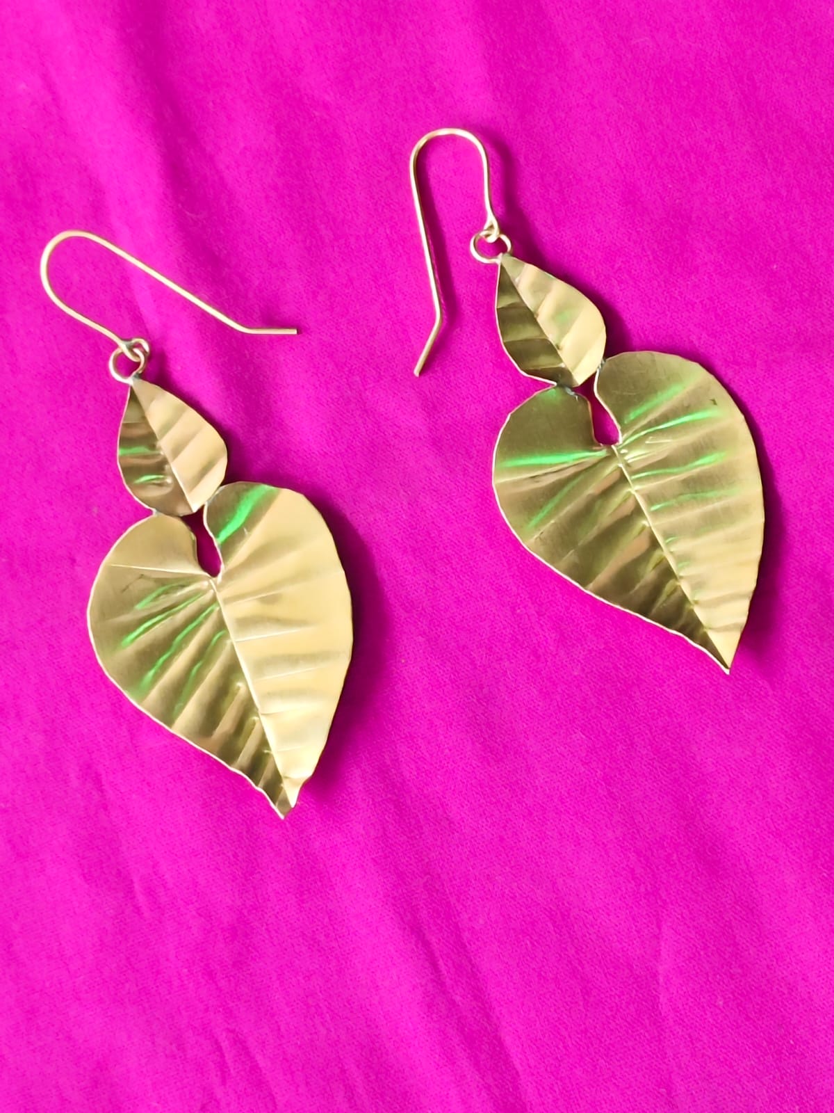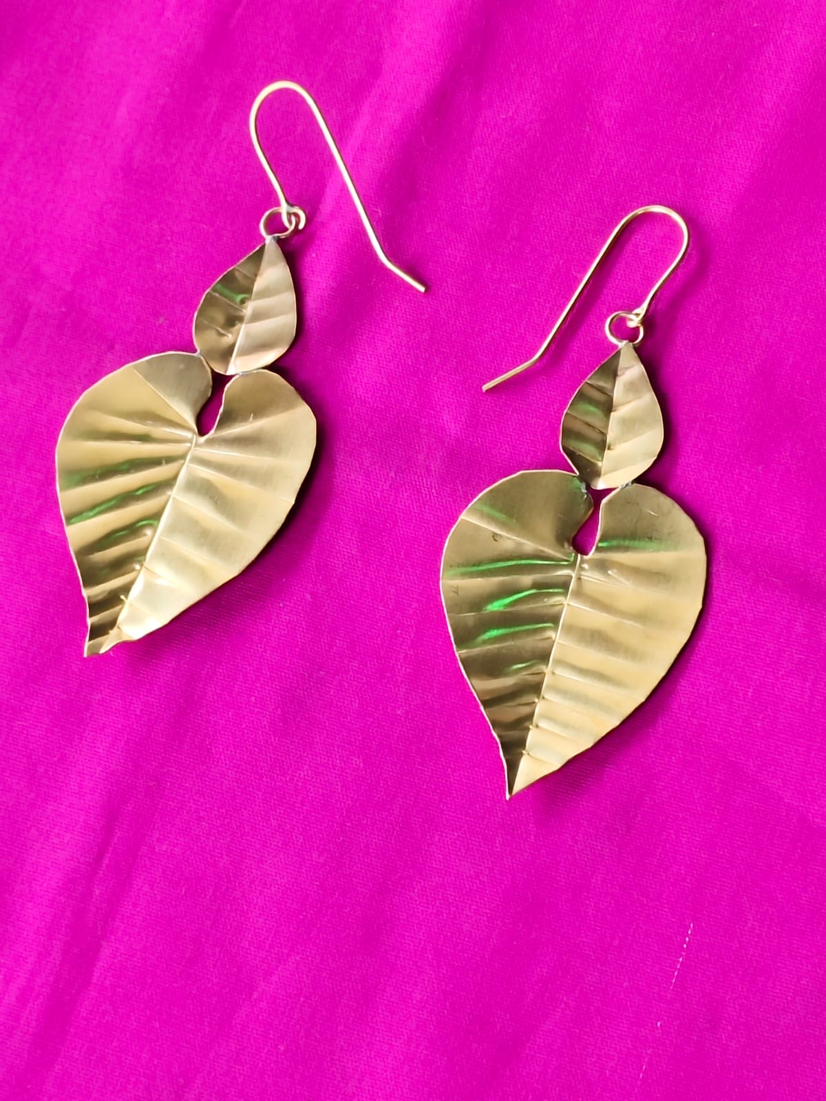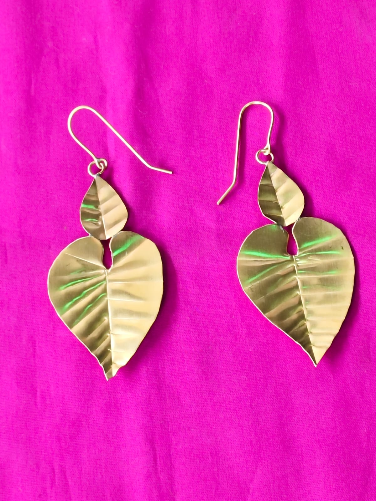 Handmade Brass Leaf Hanging Double Leaf Drop Earrings – For Women and Girls (1 Pair of Earrings)