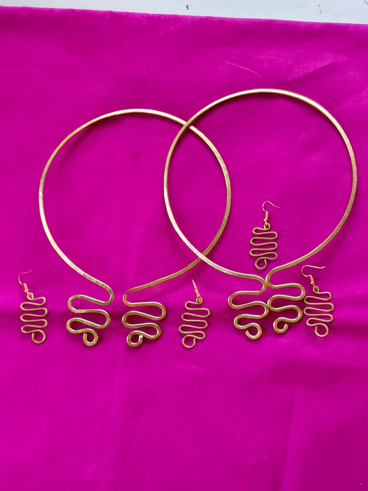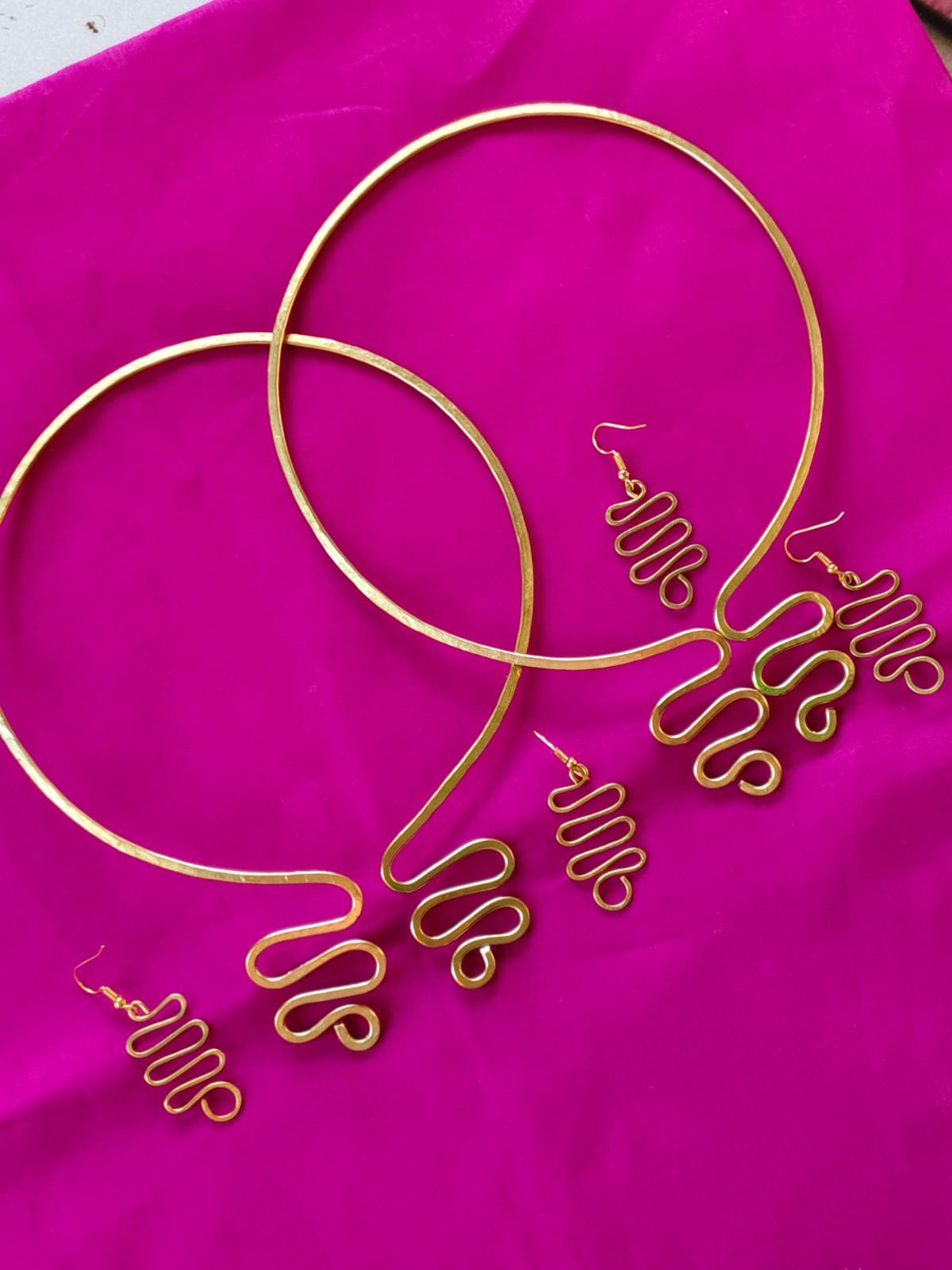 Handmade Brass Neck Necklace and Earrings Jewelry Set, for Women | (Quantity 2 pcs Set)