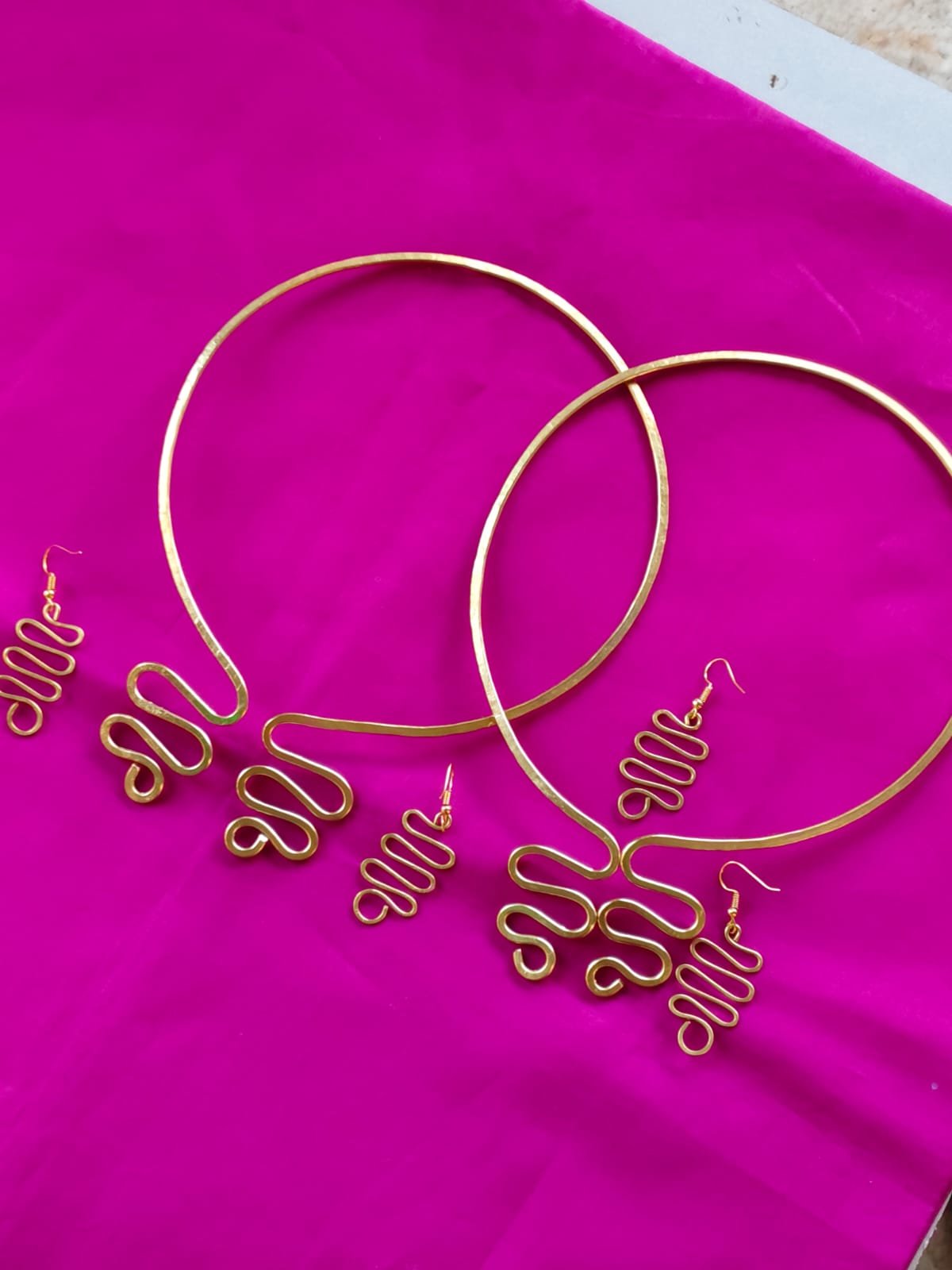 Handcrafted Brass Necklace & Earrings Set – Modern Spiral Design