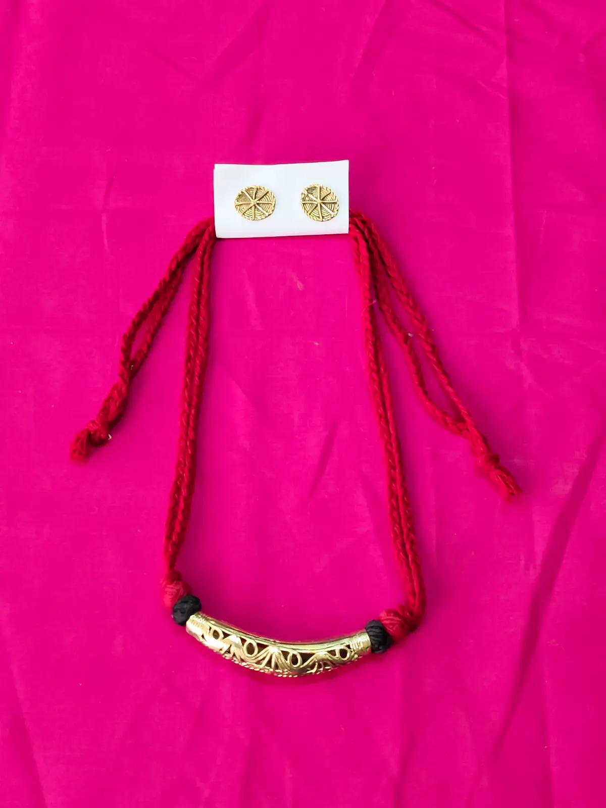 Handcrafted Dokra Brass Necklace Set – Red thread
