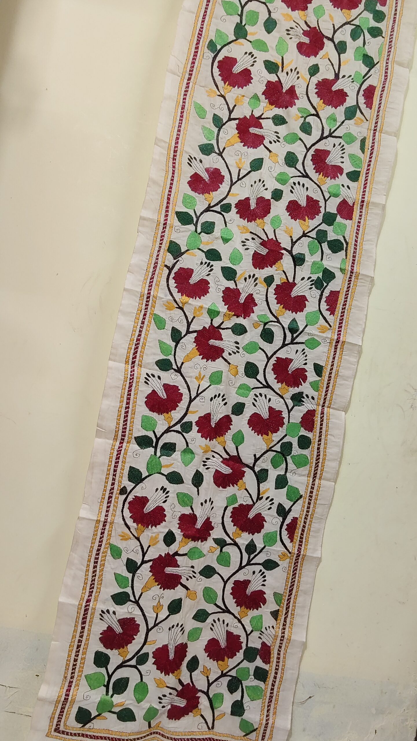 Handicraft: Tussar Silk Kantha Stitch Stole for women and girls 📏 Size: Length – 2.10 Meter, Wide – 22 Inch, (Quantity 1 piece)