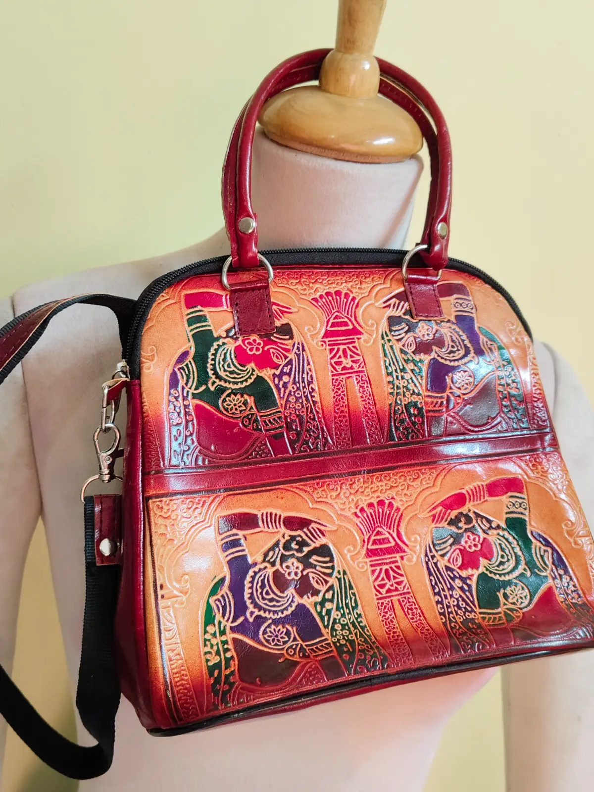 Handcrafted Leather Sling Bag with double handle – Shot Handle and Long handle adjustable