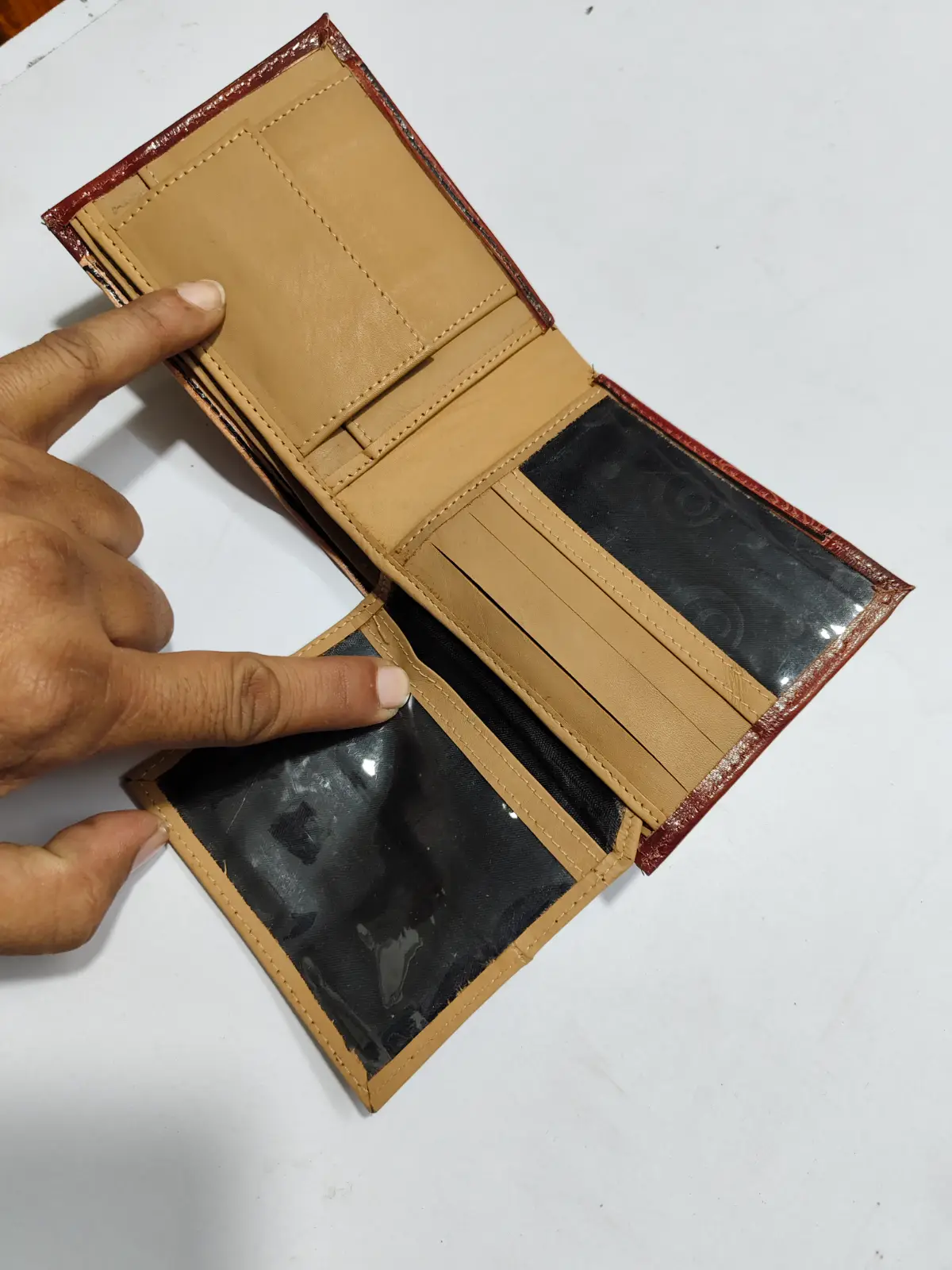 This handmade leather wallet will give you a unique experience. Product:- Length-4.5 inches, Width-4 inches, Height-0.5 inches (Quantity 1 piece)