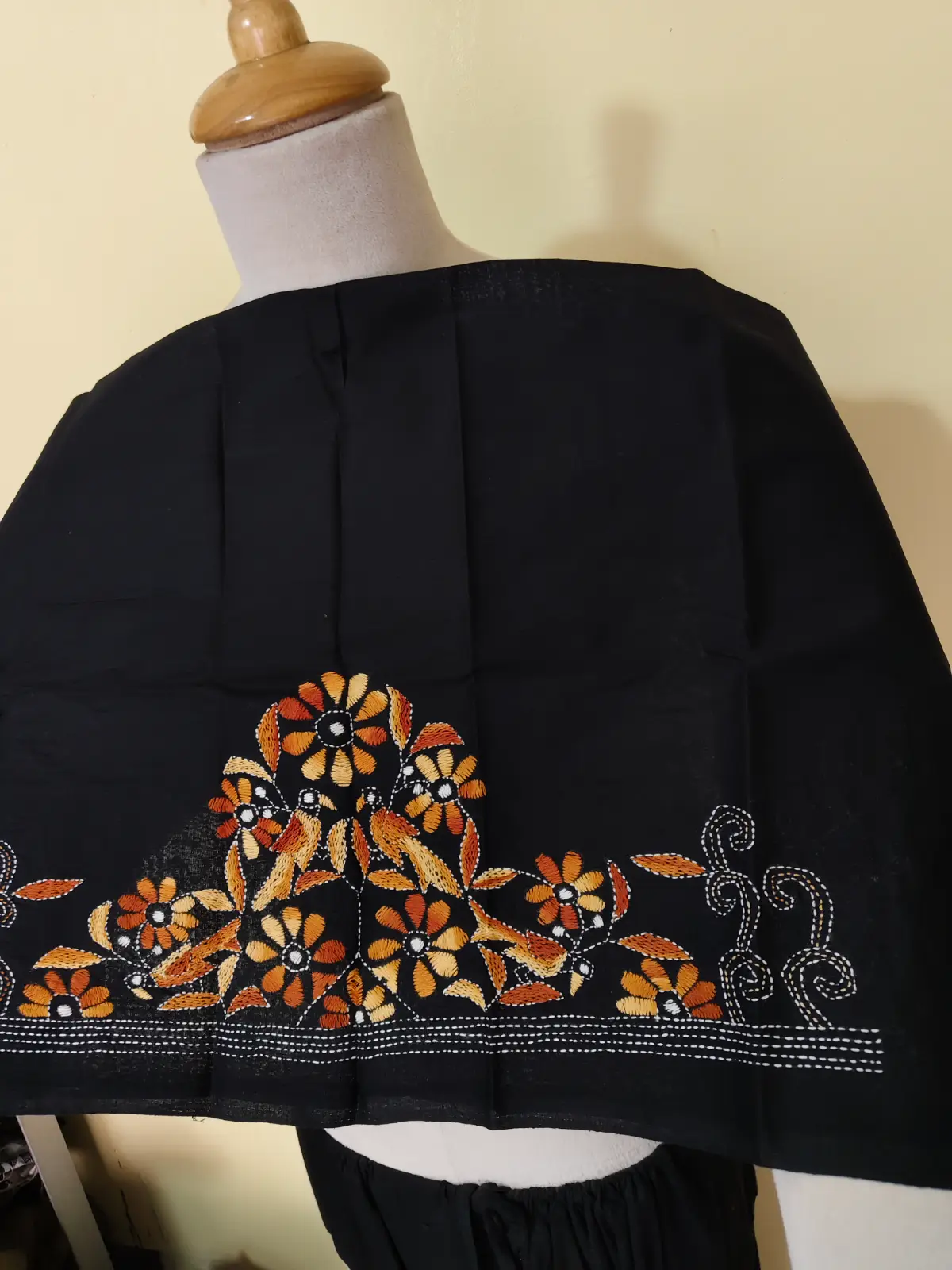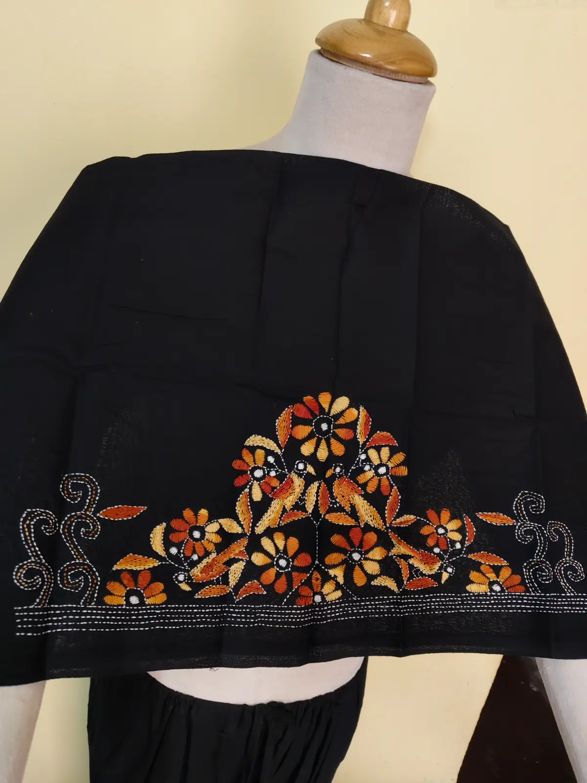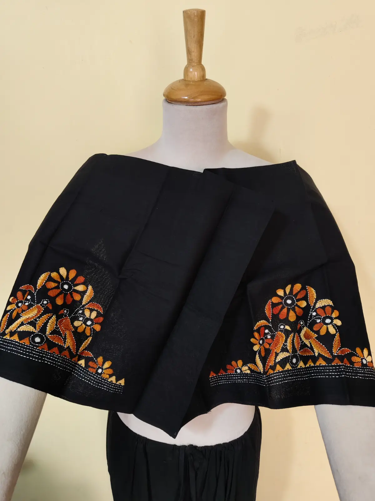 Handicraft Cotton Kantha Stitch Blouse Piece – Bird motif design black