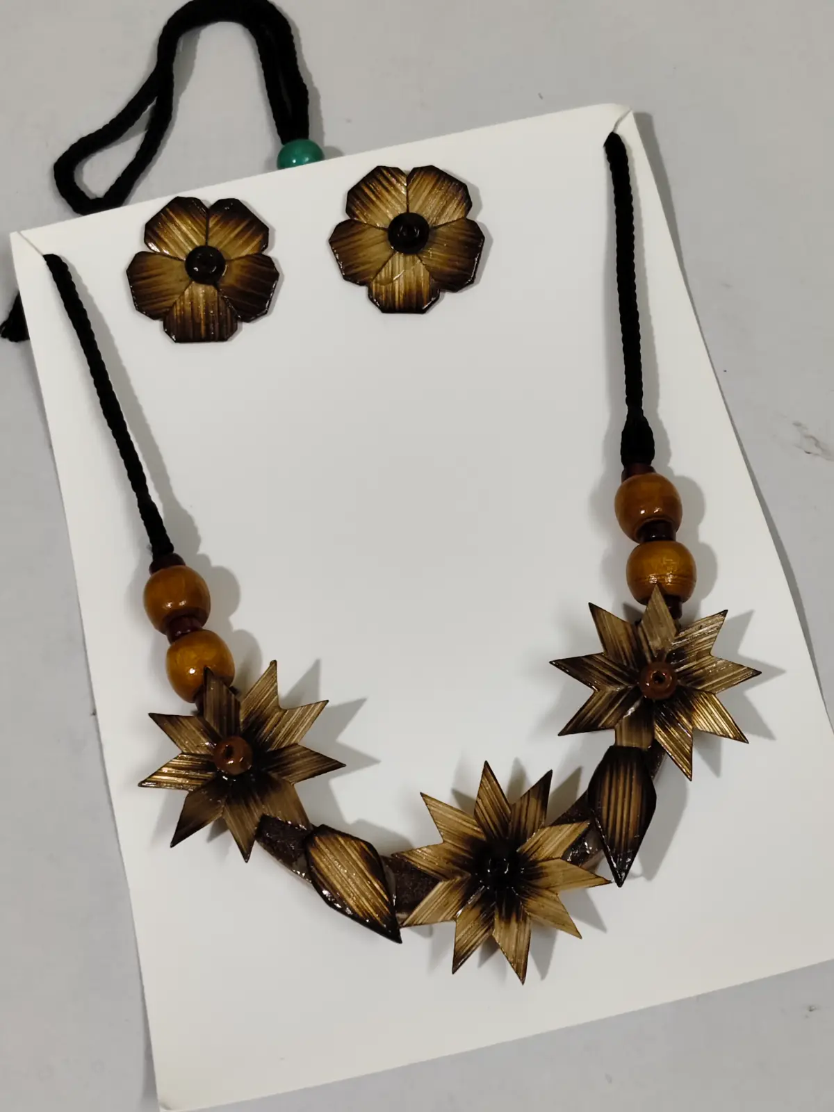 Handmade Bamboo Flower Jewellery Set – Tribal Style Necklace with Earrings