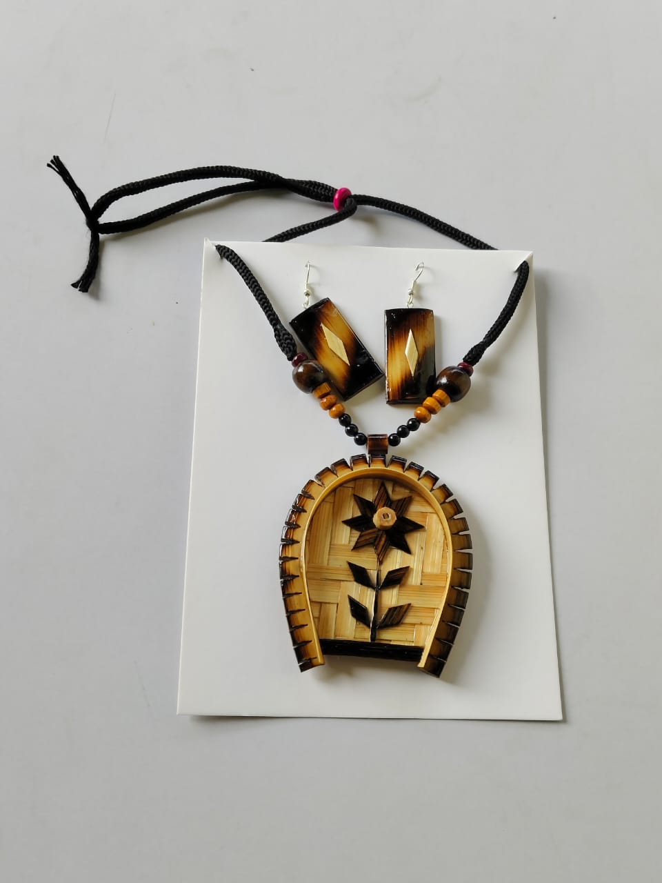 Handmade Bamboo Necklace Set with Earrings – Natural Craft Jewellery